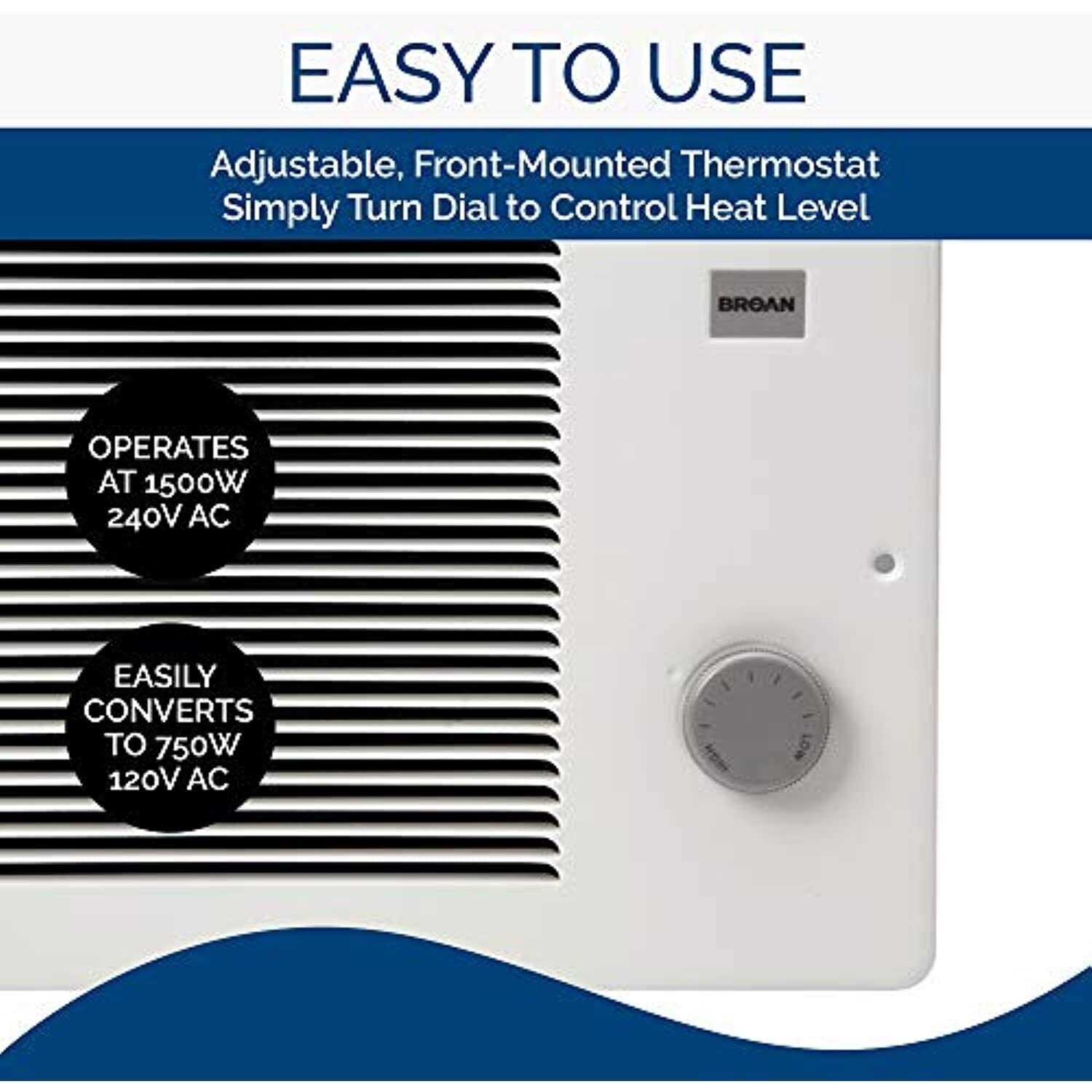Fan forced wall heater is perfect for bathrooms or other areas where quick heat is needed. Built-in thermostat maintains desired temperature. Designed for easy, recessed installation or surface mounting (requires model no 84 surface mount kit). Designer-styled white grill with rounded corners. Manual-reset thermal overload protector. Permanently lubricated motor.