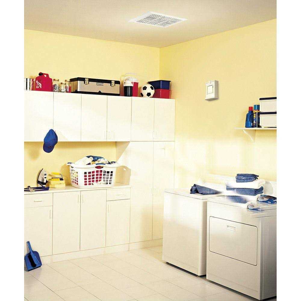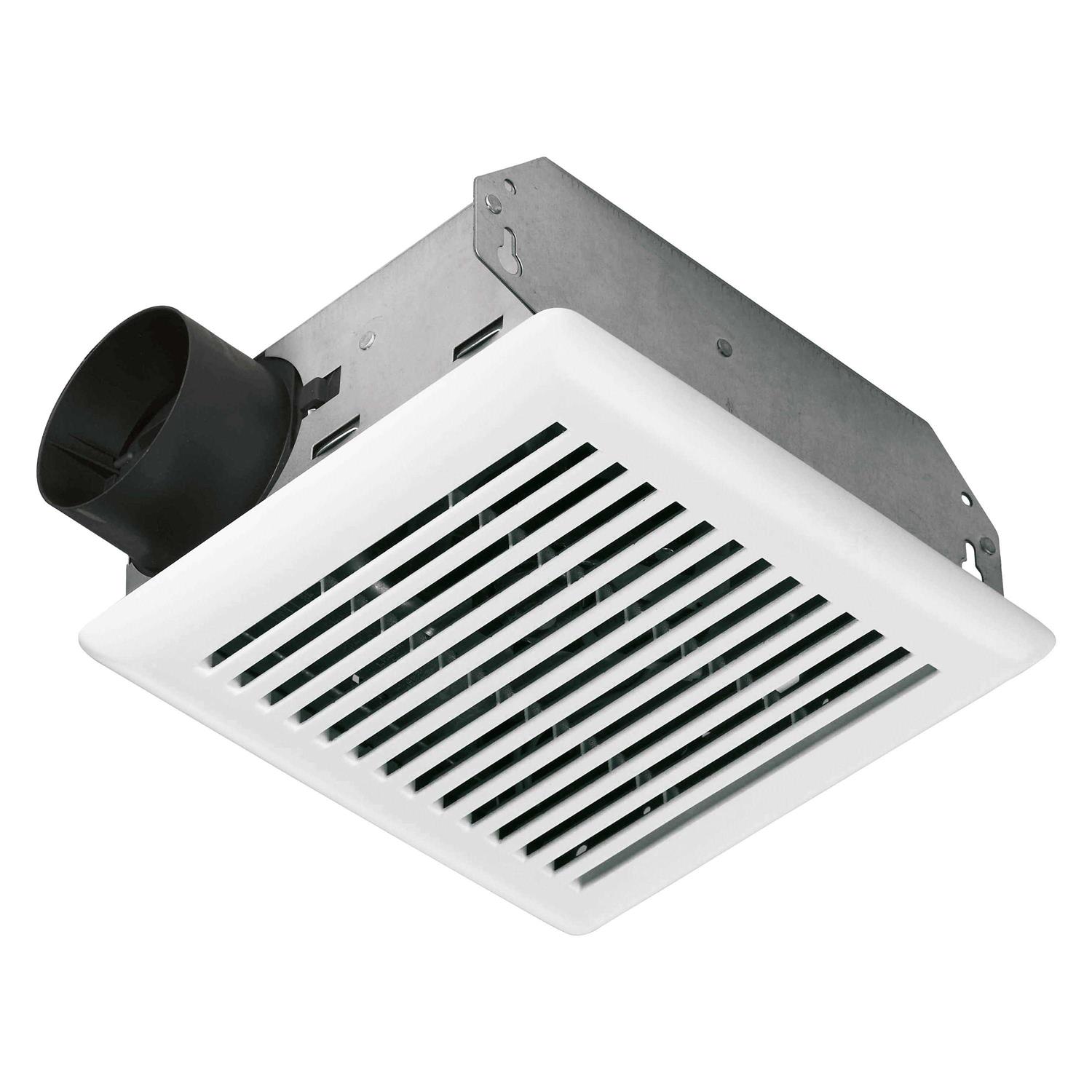 Nutone Broan Ventilation fan in white color, minimizes humidity or odors in bathrooms up to 45-Sq-ft to make your surroundings more comfortable. It features 7-1/2-Inch x 7-1/4-Inch x 3-5/8-Inch sized galvanized steel housing for added safety. It has voltage rating of 120-Volts and current rating of 0.9-Amp. It delivers airflow up to 50 CFM at 0.1-Inch static pressure and 43 CFM at 0.25-Inch static pressure. It uses 3-Inch horizontal ducts. It fits in 2-Inch x 4-Inch construction space.