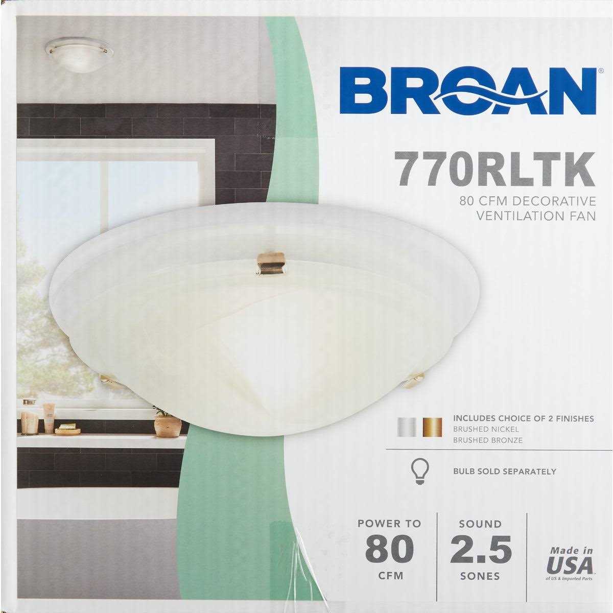 Upgrade the style of your bathroom or powder room with this elegant and modern decorative ventilation fan from Broan. Designed for a 75 sq. ft room this bath fan comes included with two easy to change trim kits to match any d茅cor (brushed nickel or brushed bronze) and sturdy key-holed mounting brackets for quick and accurate installation. This decorative bathroom 80 CFM exhaust fan provides powerfully efficient ventilation and works quietly to keep your space free from odor and humidity.