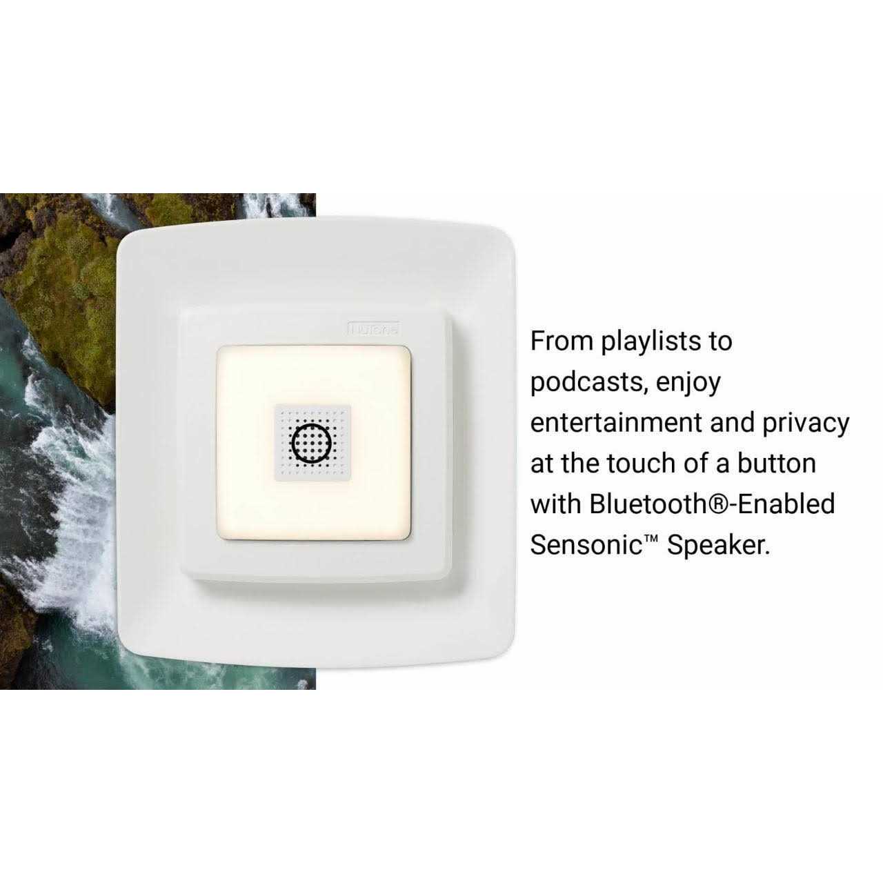 Upgrade your existing bathroom fan with the NuTone SENSONIC Speaker/LED Upgrade Cover. Brighten up any space with the bright, efficient LED light. Enjoy crisp, bold sound with the SENSONIC Bluetooth speaker, that you can connect to almost any Bluetooth device to play your favorite, music, podcast, news or audio book. This cover is designed with fewer vent slots, allowing it to stay clean longer. It has a crisp, bright white finish to match today’s popular white ceiling paint. Installation can be completed in 5 minutes or less thanks to a quick-connect plug. No wiring is required. This is the perfect 5-minute project for DIY’ers who want to improve the look of their bathroom.