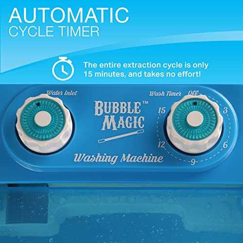 Portable Washers by Bubble Magic. Details:Bubble Magic 5 Gallon Washing Machine The Bubble Magic 5 Gallon Washing Machine saves you time and money by taking out 90% of the work involved in the manual extraction process. Maximize efficiency and create high yields with the bucket washing machine for extraction of herbs and essential oils. Featuring a 15 minute timer cycle and built-in hose for fast drainage. Includes a 220 micron bubble bag to use with your machine. Other compatible bubble bags are available in a range of different micron sizes (sold separately). The lower micron bags produce a more concentrated product. Our high-quality bubble bags are made out of mesh screen, providing you with industrial-grade filtration. These herbal extract bags drain extremely fast making for a much quicker work time. Double-stitched with extra-strong nylon thread, these micron bags will provide you with maximum durability.