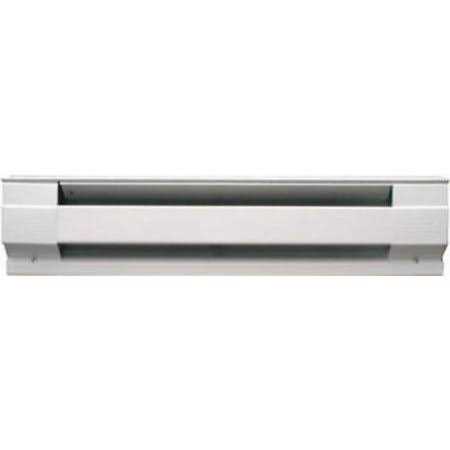 The electric baseboard heater uses convection to circulate air and the superior design maximizes surface area and air circulation. Easy installation with prepunched knock outs and universal wiring at either end. Equipped with high-temperature safety shut off.