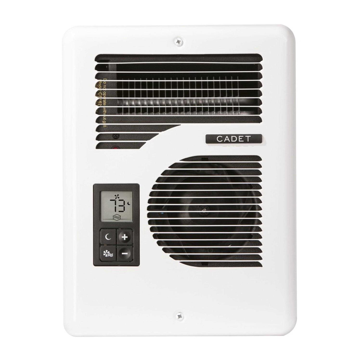 The Energy Plus uses up to 30 less energy than regular wall heaters. Intelligent controls and auto adjusting fan speed maintain room temperature within one degree. Control comfort level with a simple, built-in, backlit digital thermostat. Variable heat settings. Easy and safe to install – the smart sensor auto adjusts the heater voltage to match 120V, 208V or 240V power supply. Easy upgrade as it uses same wall can as Com-Pak series heaters, so no wall patchwork or additional wall board cut-outs are required. Night or Away button allows for presetting a secondary, lower temperature for nights or when the room is empty. Tamper-proof settings can be set at minimum and maximum temperature points. Fan-only mode keeps the air circulating. Powder-coated with no sharp edges, heavy-duty sealed heating element, and thermal safeguard.