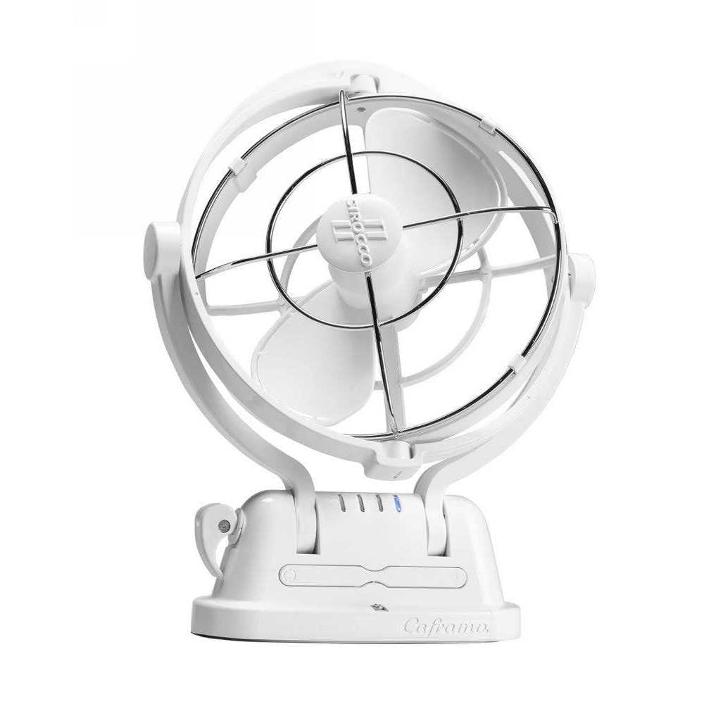 Sirocco II Fan A unique design, the Sirocco fan excels in performance and is a premium choice. W 25cm x H 31cm x D 8cm. 3-speed push button control. Fold away option. 4 preset timer settings. Ultra quiet, long-life motor. Draws less than 0.4amps at high speed. Two mounting options (Self adhesive or permanent fixture) Time indicator lights and automatic dimming. Allows full 360-degree rotation for limitless positioning. The best cabin fan available in the marine market.