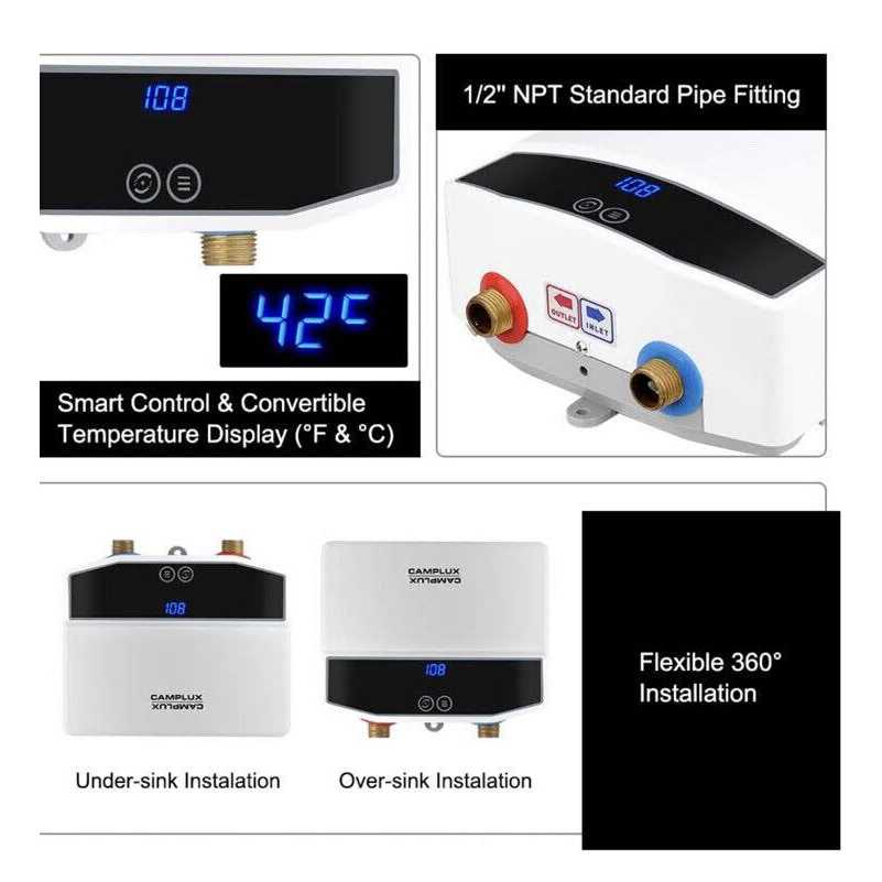 Looking for a compact and reliable tankless water heater? This model is perfect for under-sink installation, and features a rotatable LED display and touch control panel. Enjoy consistent hot water on demand, with five built-in safety protections.