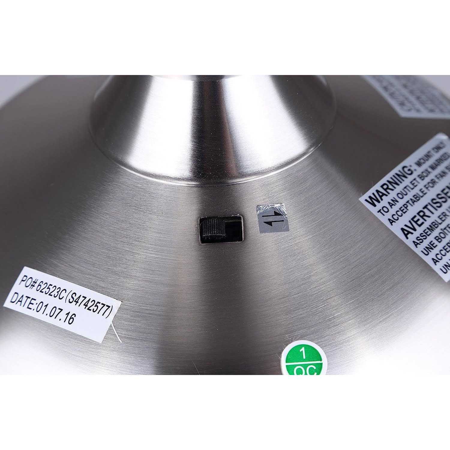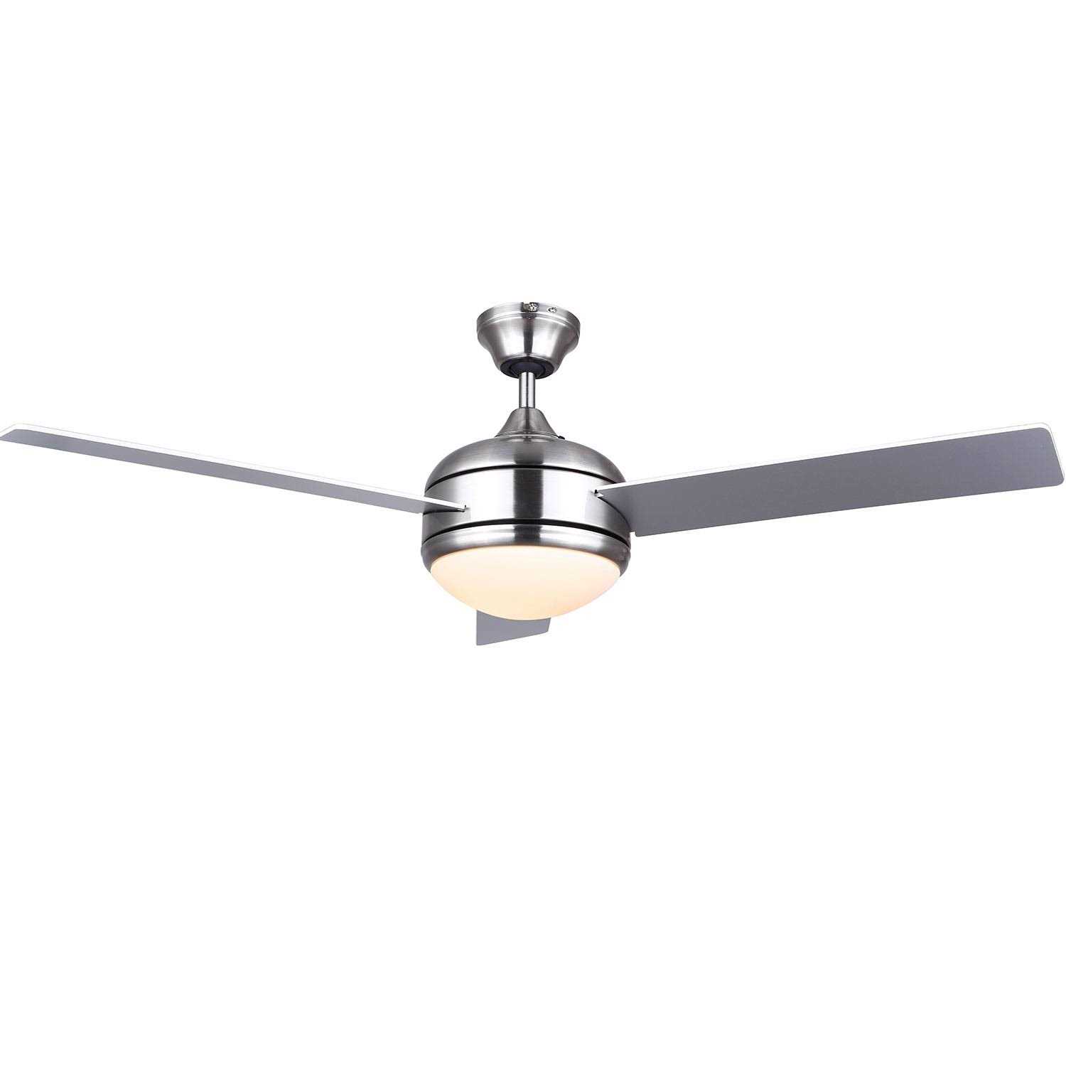 Canarm LTD Calibre BPT 48 Frosted Glass 1 Bulb Light Kit 48,Inch Ceiling Fan with 3 Blades Grey/White 48,Inch : CALIBRE BPT Features: ,Ceiling fan.,Frosted shade.,Three speed dual mount with dome light kit and remote control.,Airflow: 4632 cubic ft/min.,Airflow efficiency: 79 cubic ft/min/watts.,Blade sweep: 48″.,Blade pitch: 11 Degree.,Motor size: 165mm x 14.4mm.,AMPS: 0.49.,RPM (High,Med,Low): 176,128,90.,CSA,US listed. Construction: ,Constructed of steel/copper wire/aluminum diecast/zinc diecast. Color/Finish: ,Brushed pewter finish.,3 Reversible blades with white/grey oak finish. Specifications: ,Electricity use at high speed: 59 Watts.,Accommodates (1) 100W A19 type medium base bulb (not included).,Product Air Flow: 4632 Cubic Feet Per Minute.,Electrical Usage: 59 Watts.,Air Flow Efficiency: 79 Cubic Feet Per Minute Per Watt. Dimensions: ,Blade length: 19.21″.,Overall dimensions: 15.55″ H x 48″ W.