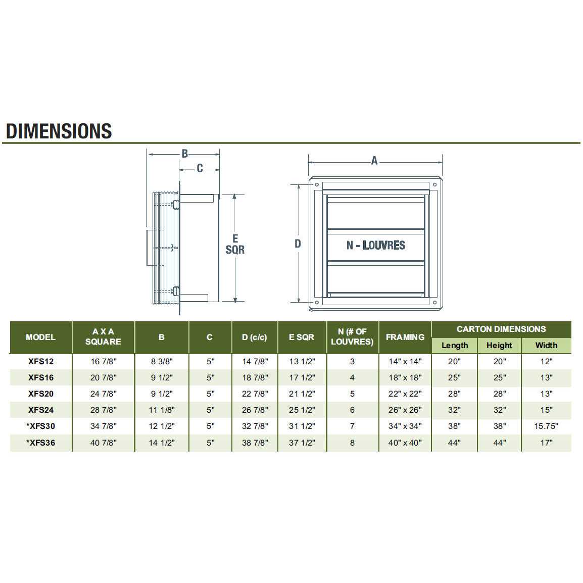 Canarm’s XFS series wall exhaust fans are ideal for commercial applications. They feature smooth, quiet, reliable, maintenance free operation. Available in 12” to 24” sizes – fans are 2 or 3 speeds with OFF and come complete with a 9′ cord and grounded plug. The fans have a durable steel construction with powder coat black finish and quiet, aluminum shutters with tie bar to maximize airflow. Installation is easy – simply mount the fan with 4 screws, plug it in and turn it on!