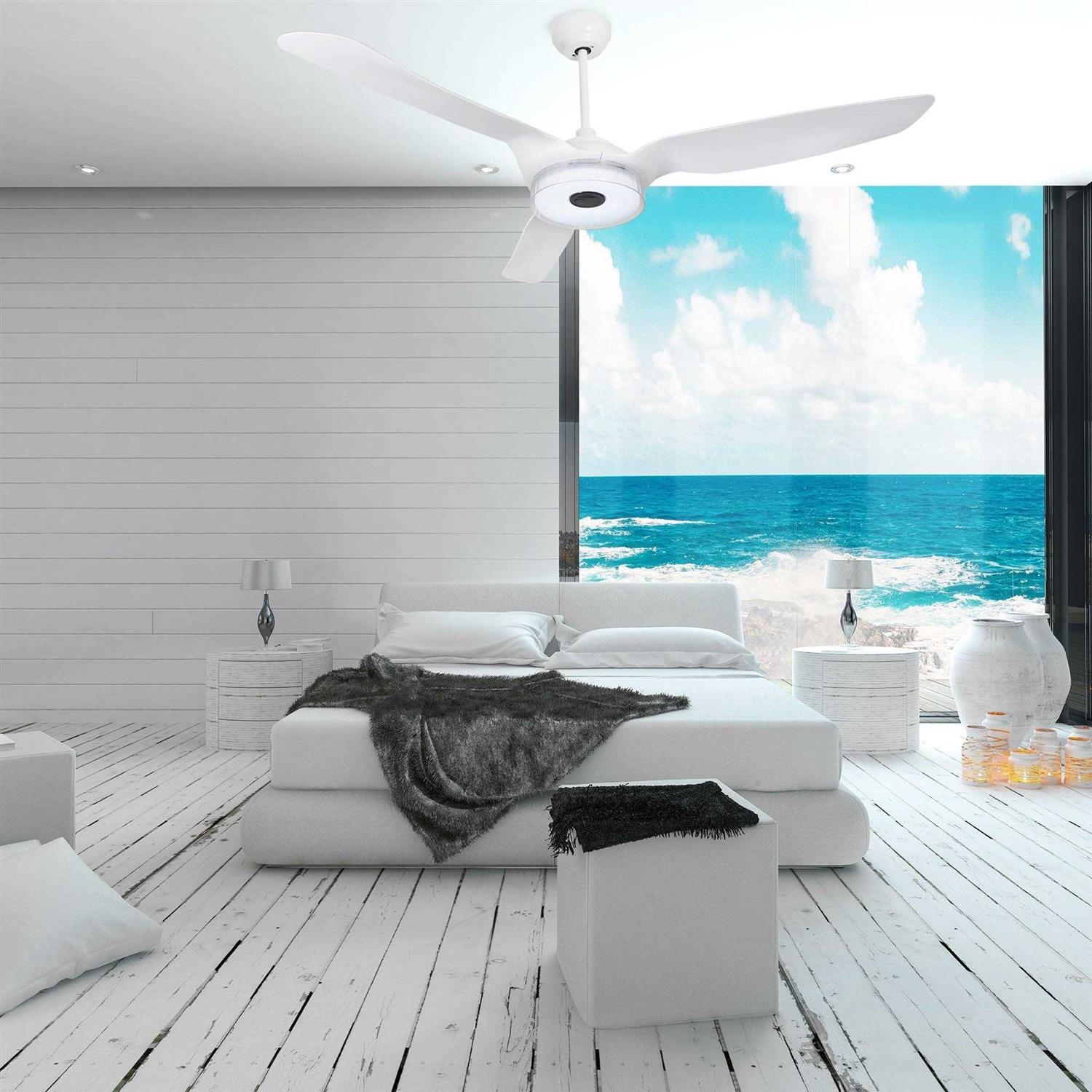 This Icebreaker Smart Ceiling Fan keeps your space cool, bright, and stylish. This WiFi-connected ceiling fan is a simple, modern masterpiece perfect for your large living spaces. It features strong blades and an integrated 4000K LED to illuminate the space. The silent and efficient 10-speed reversible motor allows you to change the direction of your fan from downdraft mode during the summer to updraft mode during the winter. Suitable for both indoor and outdoor use, you can easily control it all and set your preferences via the included full function remote control, WiFi apps, or with Amazon Alexa and Google Home Assistant voice controls.