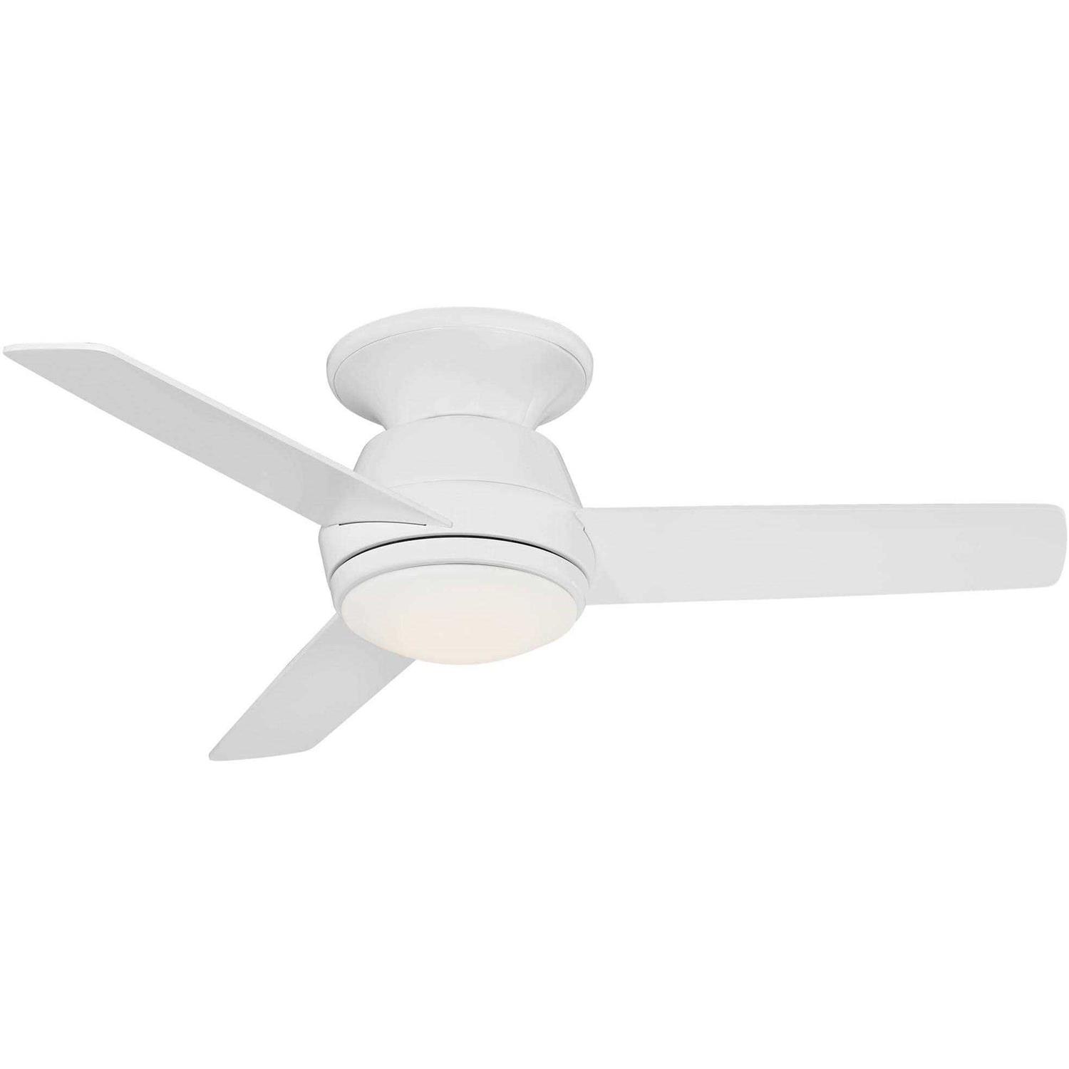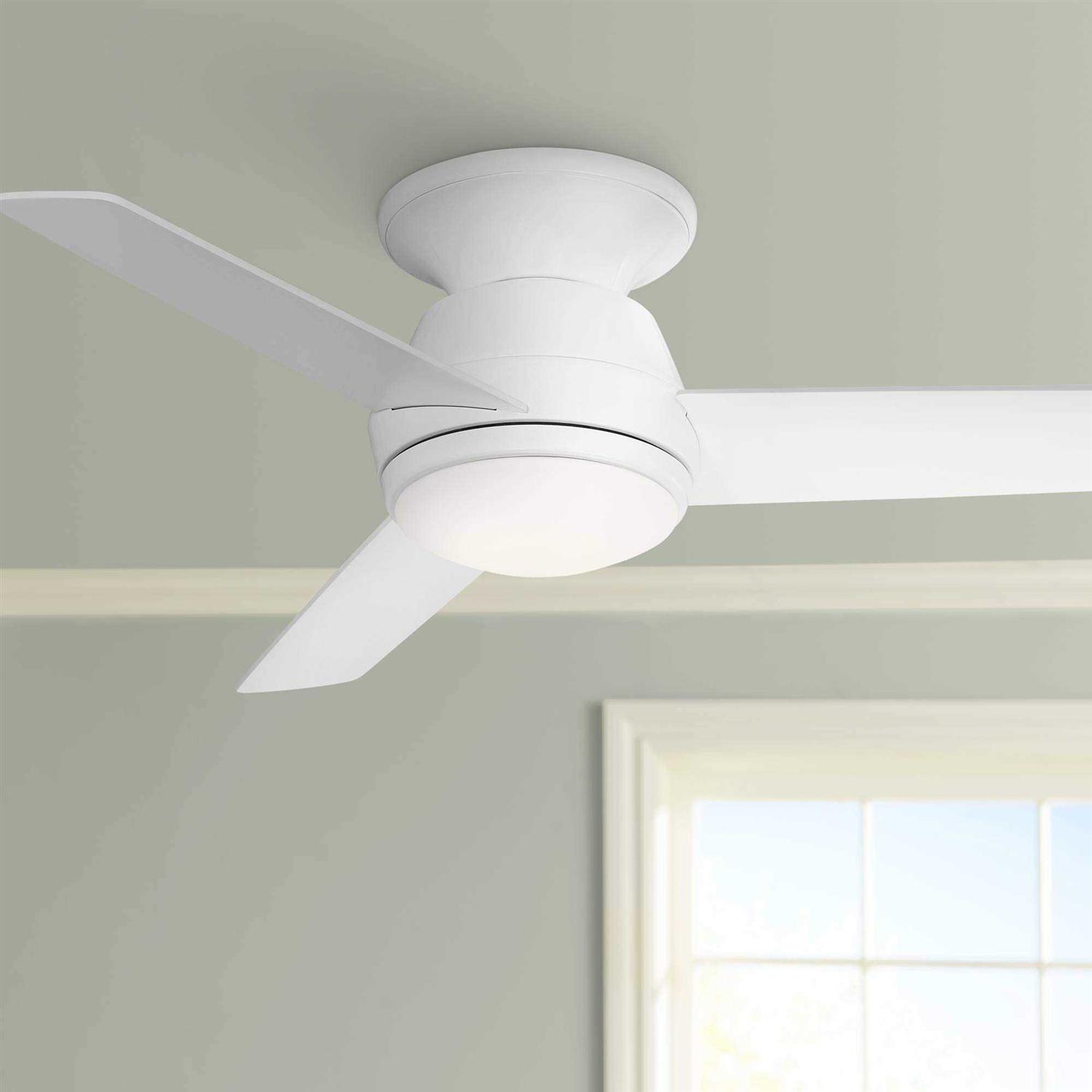 This contemporary ceiling fan is designed to be installed flush onto the ceiling, making it a great choice for tighter spaces. It comes in a simple three-blade design, all in a white finish, with an energy-efficient LED light integrated into the bottom. Includes a remote control with light dimming function.