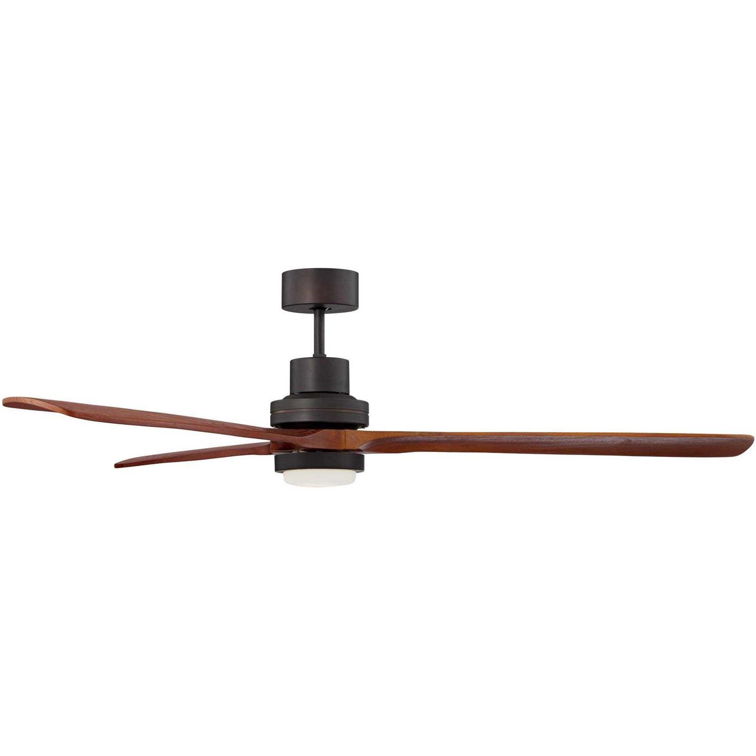 Smooth, handsome lines lend contemporary grace to this tasteful large ceiling fan from Casa Vieja. Three solid wood blades finished in walnut are paired with an oil-rubbed bronze finish motor, creating a cohesive look and feel. This design includes a hand held remote control that controls both the fan and integrated LED light.