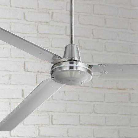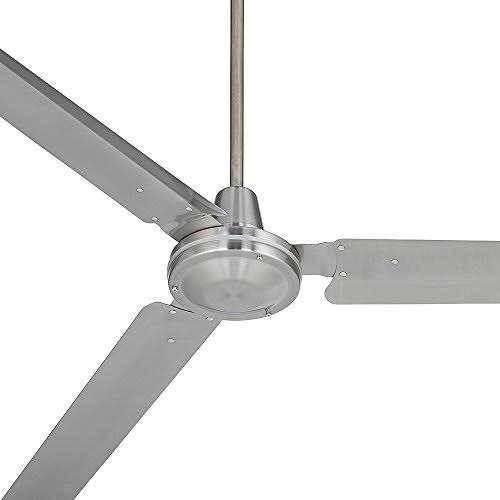 Brushed nickel motor finish. Three brushed nickel steel blades. 72″ blade span. 16 degree blade pitch. Minimum 10 foot ceiling required for installation. 188 x 25 mm motor size. Wall control included. UL listed for damp locations. Includes 6″ downrod. Fan height 12″ from ceiling to blade (with 6″ downrod). Fan height 18 3/4″ from ceiling to switch housing (with 6″ downrod). Canopy is 6 1/2″ wide, 2 1/4″ high.