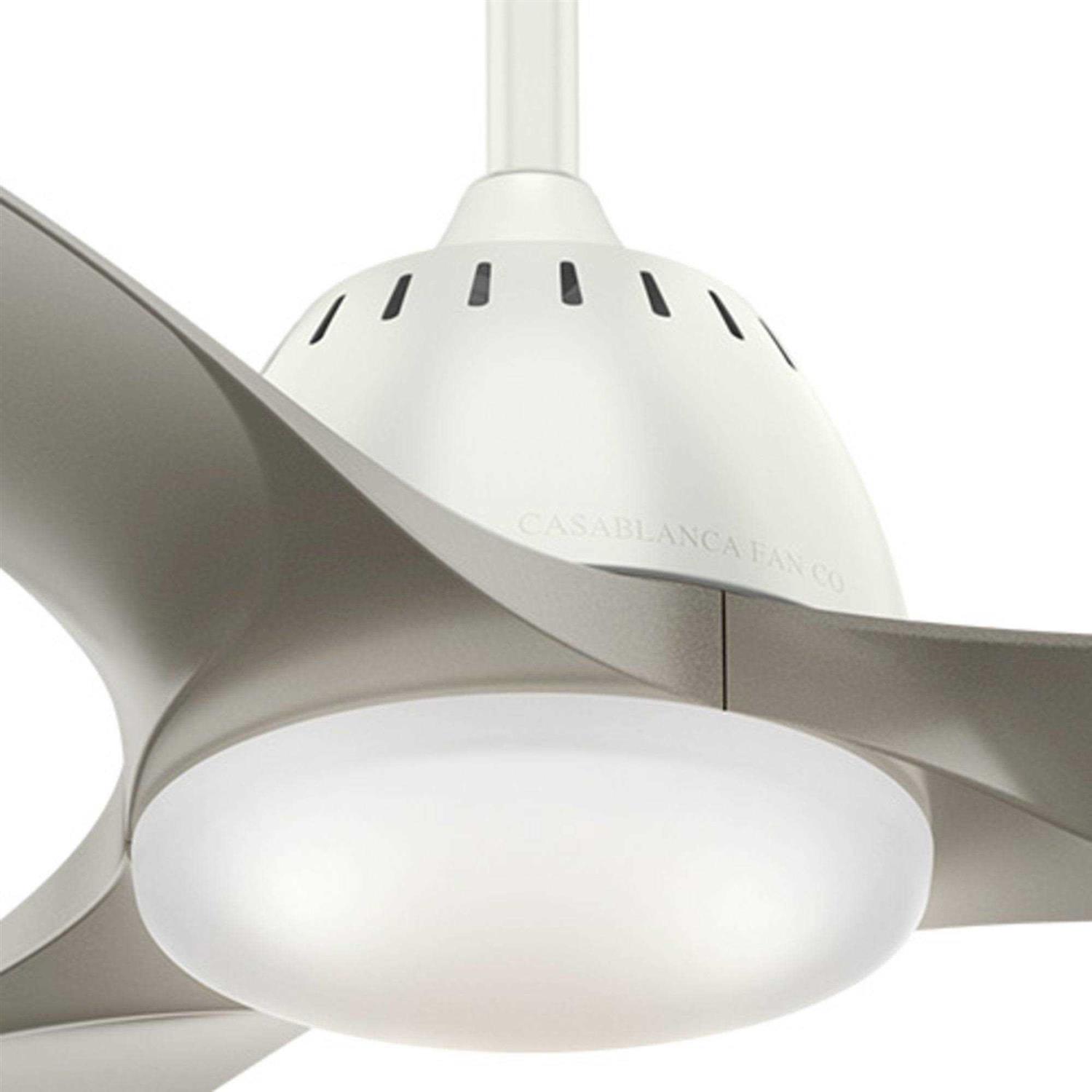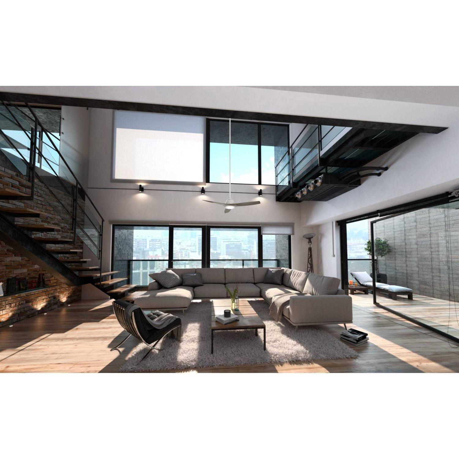 The Wisp modern ceiling fan with a little flare of retro brings a balance of finesse and joviality into your home. The unique curvature in the blades adds a touch of personality to an otherwise clean, elegant design. Extra low serenity speed produces a uniquely soothing breeze, while graceful blade movement creates a luxurious look and mood. The LED light ceiling fan has fully-dimmable, high-efficient LED bulbs that give you total control over your lighting. This adjustable mount fan comes with three-position mounting system which allows for standard, low, or angled mounting. 16-degree blade pitch optimized to ensure ideal air movement and peak performance. This reversible fan comes with reverse rotation fan blades that keep the rooms in your home feeling cool during summers and warm during winters. Ideal for use in rooms or spaces with ceilings 9 or greater.
