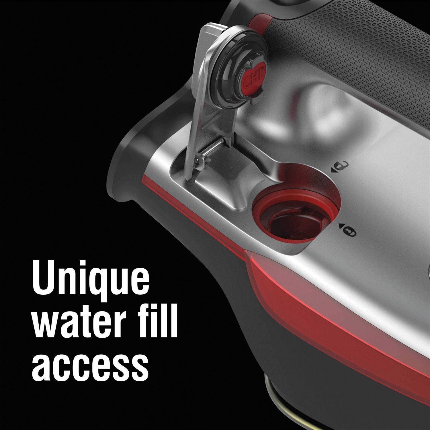 Engineered with a titanium-infused ceramic soleplate similar to our popular CHI flat irons, The touchscreen clothing iron is durable enough to withstand scratches, heats up quickly and provides an extra-smooth glide. Ironing is simpler than ever with a touchscreen control that eliminates guesswork. With over 400 steam holes, You can smooth out the toughest of wrinkles effortlessly. Chi flat iron technology The touchscreen clothing iron is designed using the same titanium-infused ceramic soleplate technology that powers chi’s hair styling tools, including the flagship CHI G2 flat iron. Advanced touchscreen swipe through to select the right temperature based on fabric or the symbol on the tag of your garment. Powerful steam with over 400 steam holes, this iron delivers powerful steam that makes the process of steaming out wrinkles smooth and fast. Modern style with premium materials the titanium-infused ceramic soleplate is ultra-strong and scratch-resistant. Matte chrome accents and a sleek design give this iron A polished look. And the handle with textured grip gives you complete control and comfort. Unique water Fill access a larger opening helps you add water quickly without spills.
