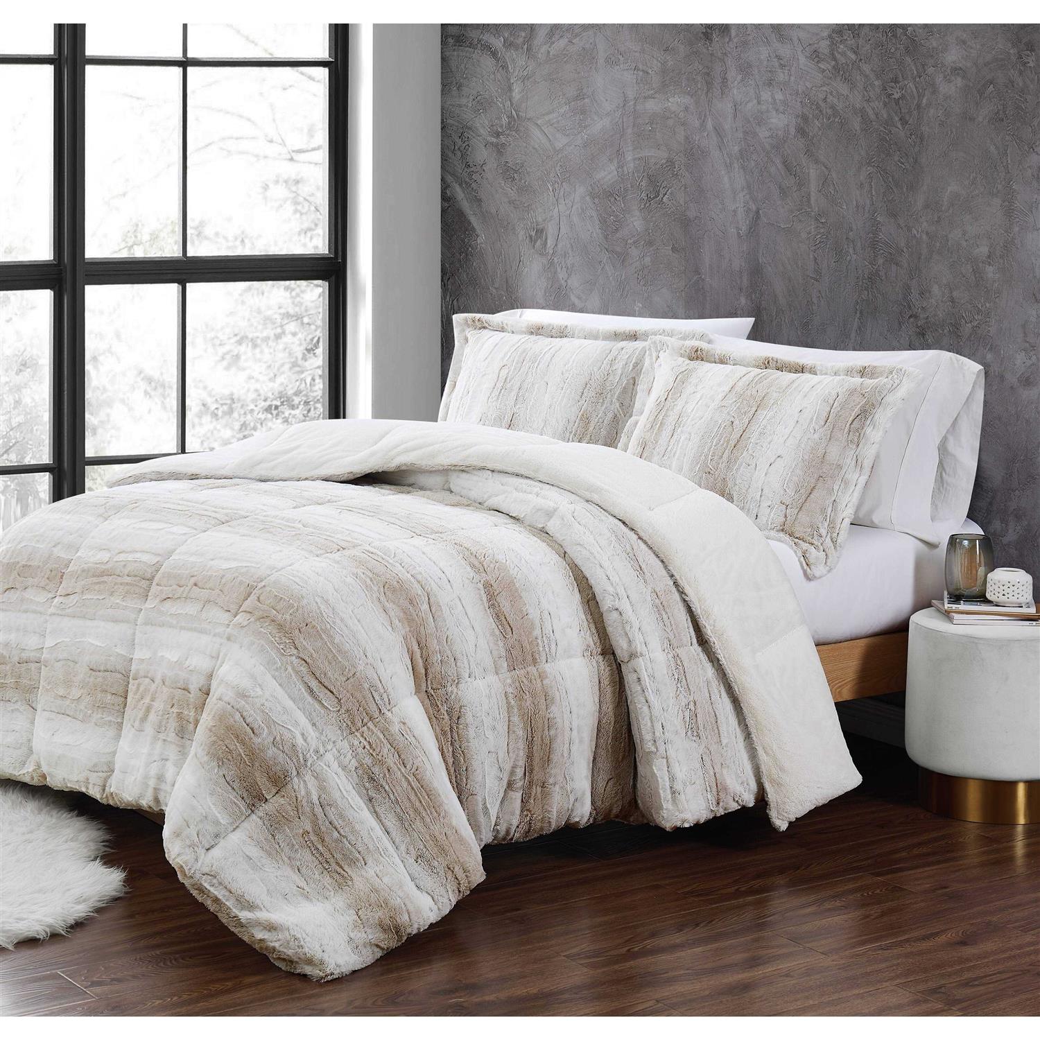 Face is 100% Carved Pv Fur Reversing to Velvet. Filled With 100% Polyester. Includes one full/queen comforter (90×90 inches) and two standard shams (20×26 inches) Face is 100% carved PV fur reversing to velvet. Filled with 100% polyester for a lightweight yet warm comforter. A faux fur face and back winter weight comforter. The face of the comforter uses a 100% polyester knit in a snow leopard pattern with cut out trimming for extra texture. It reverses to a 100% polyester velvet. The 100% polyester filling provides an extra layer of warmth for long winter nights. Digitally printed sets allows for saturated colors that combine in endless beautiful hues Fashion bedding and home decor from the ever fabulous Christian Siriano New York home collection.