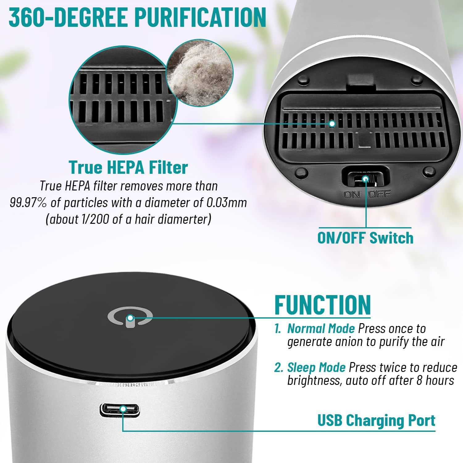 Clean Air Freshener and Odor Eliminator W/Scent Cartridge. Small Electric Fragrance Diffuser Removes Pet, Smoke and Other Odors. Smart-Touch USB
