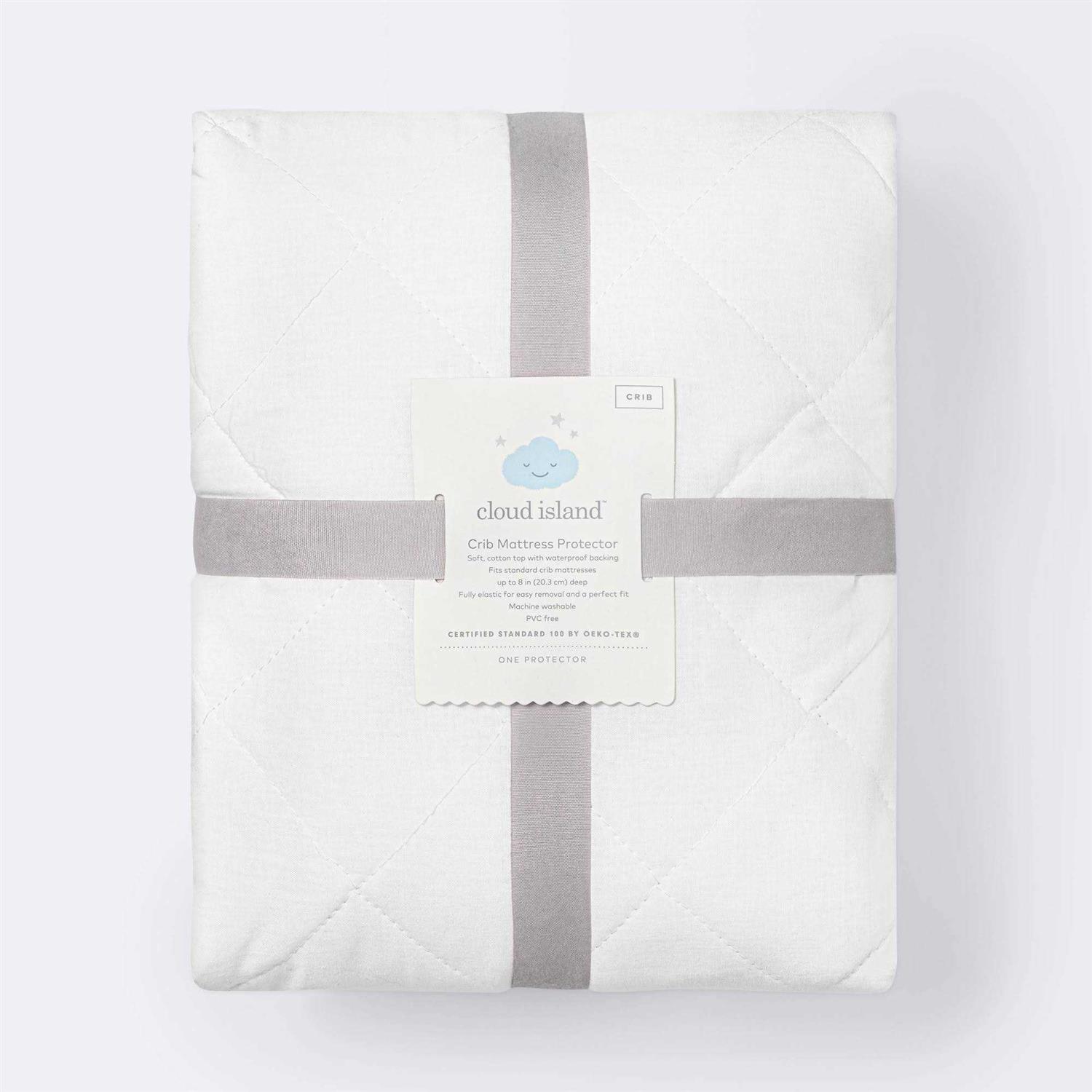 Make sure Baby stays comfy while they sleep by ensuring their crib mattress stays clean and dry with the Crib Mattress Protector from cloud island. Designed for standard-size crib mattresses, this waterproof crib mattress protector features a full elastic design that makes it easy to secure over the corners of their crib mattress for a perfect fit and easy removal. Made from a soft fabric, it features a waterproof backing that protects the mattress from moisture to enhance its life.