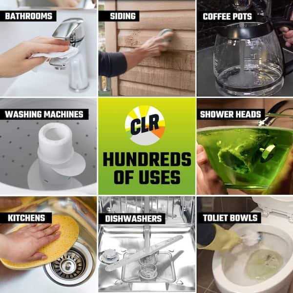 Need to tackle tough calcium and lime deposits as well as rust stains. CLR Calcium, Lime and Rust Remover is a powerful formula that quickly and easily dissolves and removes tough calcium and lime deposits as well as surface rust stains from bathtubs, toilet bowls, sinks, glass, chrome, fiberglass, stainless steel, most coffee makers, humidifiers, dishwashers, washing machines and shower heads. The formula also is perfect for use on RVs and boats. CLR Calcium, Lime and Rust Remover is part of the EPAs Safer Choice Program, recognizing the product as a safer alternative to chemicals. CLR is also Certified Bio Based. The fast-acting, powerful CLR formula is septic-safe and contains no phosphates. Always spot test in an inconspicuous area before beginning to clean.