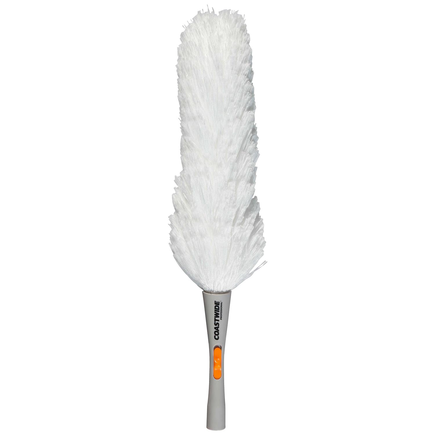 Expand your selection of cleaning tools with this versatile white microfeather duster. The synthetic microfibers offer durability and effectively remove dust and dirt, while the flexible duster head lets you get into tight hard-to-reach corners for thorough cleaning. Use compatible threaded handles to extend the reach of this duster. This Coastwide Professional gray microfeather duster has a compact size for easy storage. Duster traps more dirt to make cleaning easier. Holds dust until shaken. Comes in gray and made of microfiber. Fit for easy storage in small areas. Flexible head fits any dusting job. Compatible with threaded-tip handles for extended reach. For dust and debris removal on surfaces. Keep tabletops, shelves, and various surfaces clean and dust-free with this 18-inch Coastwide Professional gray microfeather duster.