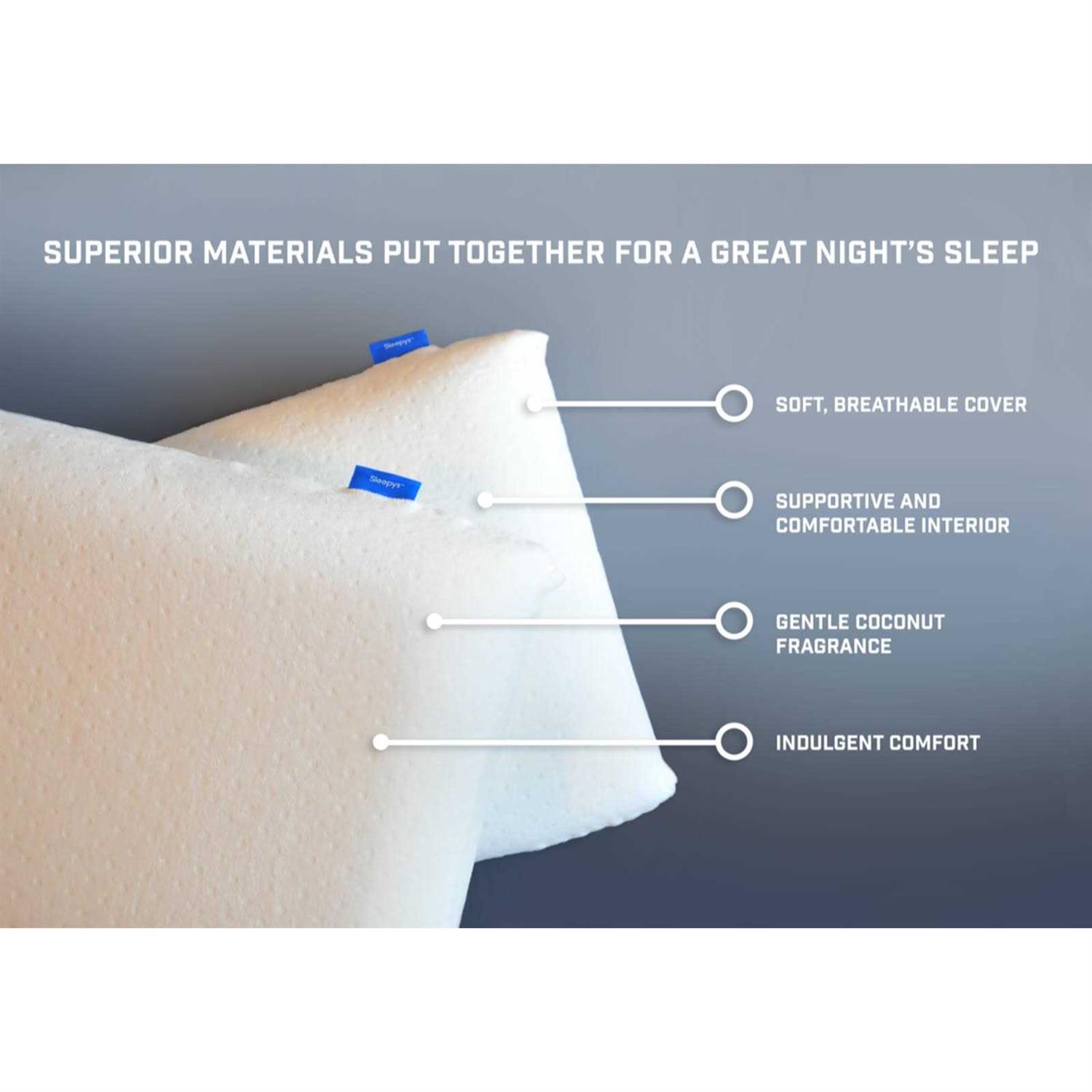 Close your eyes and drift off to the calming scent of coconut. The aromatherapy and coziness of this fragrance infused pillow have made it a Sleep Expert and customer favorite. The luxurious resilient memory foam gently conforms to your head and neck for proper alignment relaxing pressure relief and soothing support. Plus with 3x more airflow than a conventional pillow you’ll always snooze comfy and cool. Paradise found!