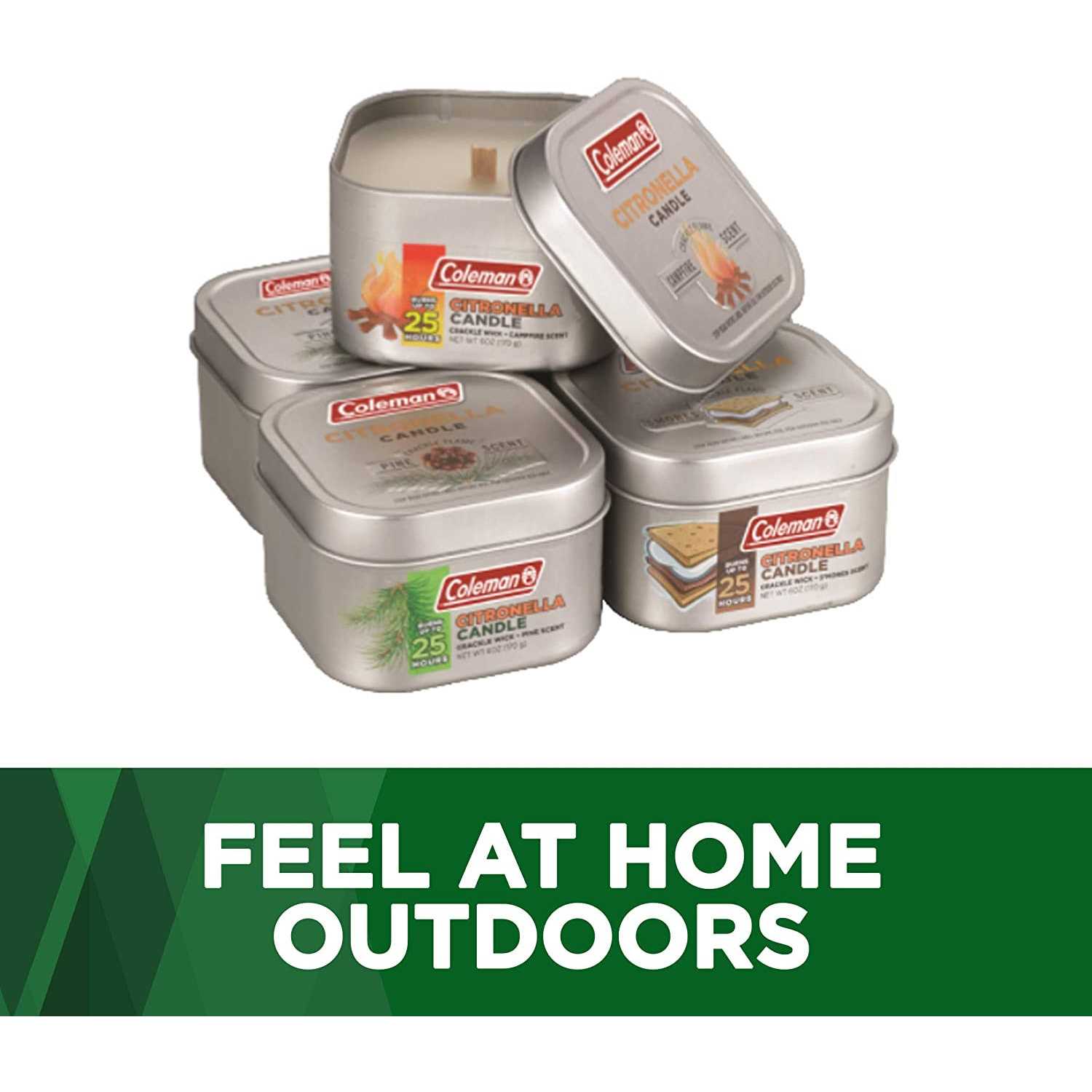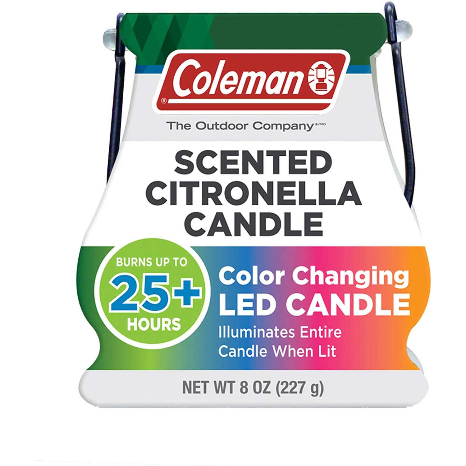 Make your outdoor gatherings with friends and family more festive with a Coleman LED Citronella Candle. It completely illuminates with beautiful shades when lit. This color changing LED candle burns up to 25+ hours. It comes in an embossed glass with a wire handle, making it easy to carry. The scent helps to keep unwanted pests such as mosquitoes away while you socialize.