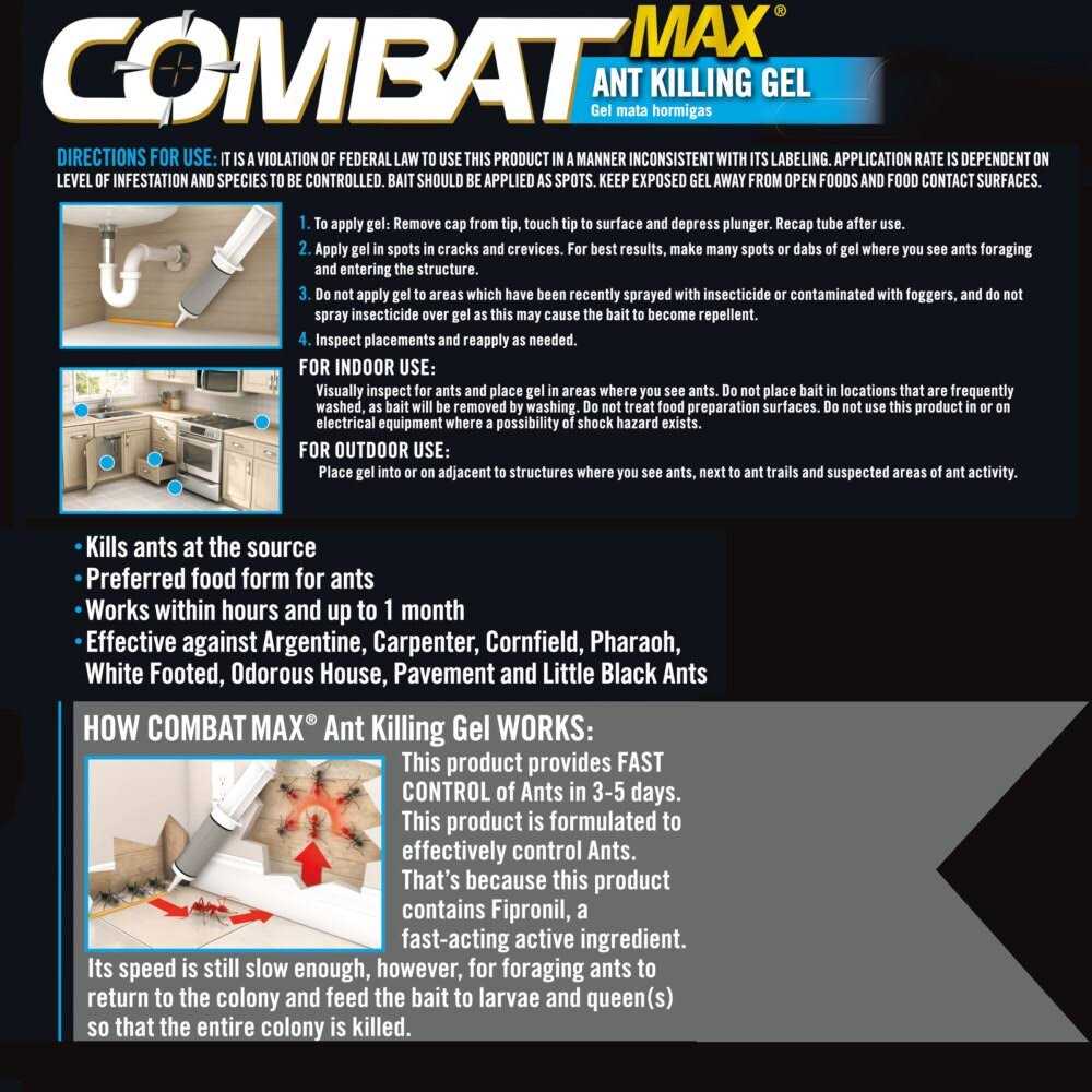Kills ants at the source. Preferred food form for ants. Works within hours and up to 1 month. Contains fast acting ingredient, Fipronil. Its speed is slow enough, however, for forging ants to return to the colony and feed the bait to the larvae and queen. Gel comes in a syringe applicator. 0.95 oz. No. 97306: Type: Gel, Active Ingredient: Fipronil”