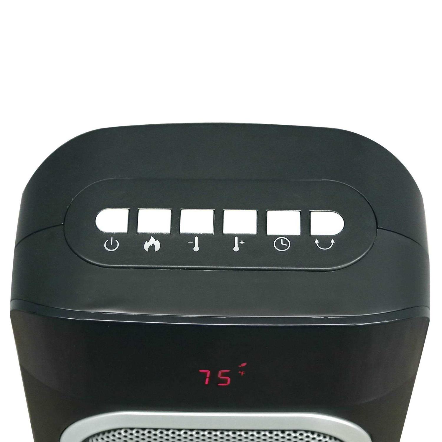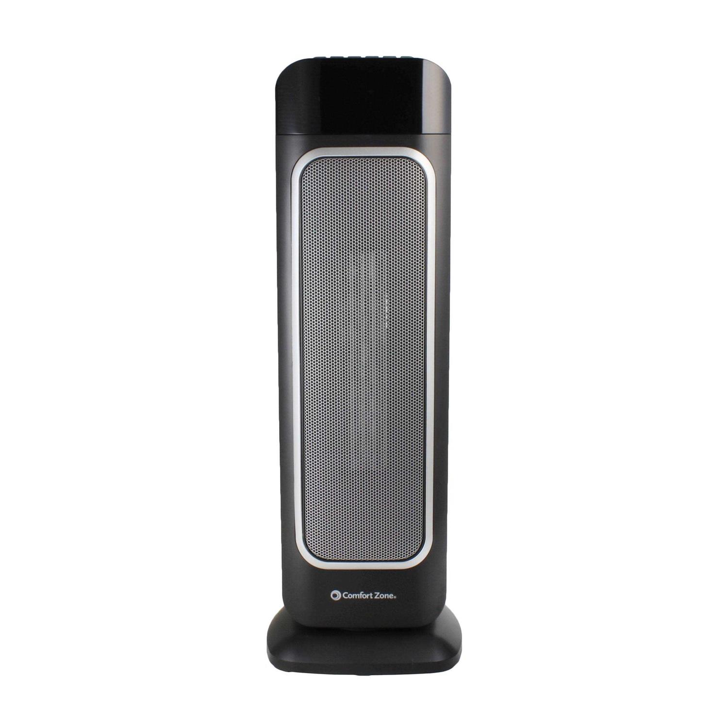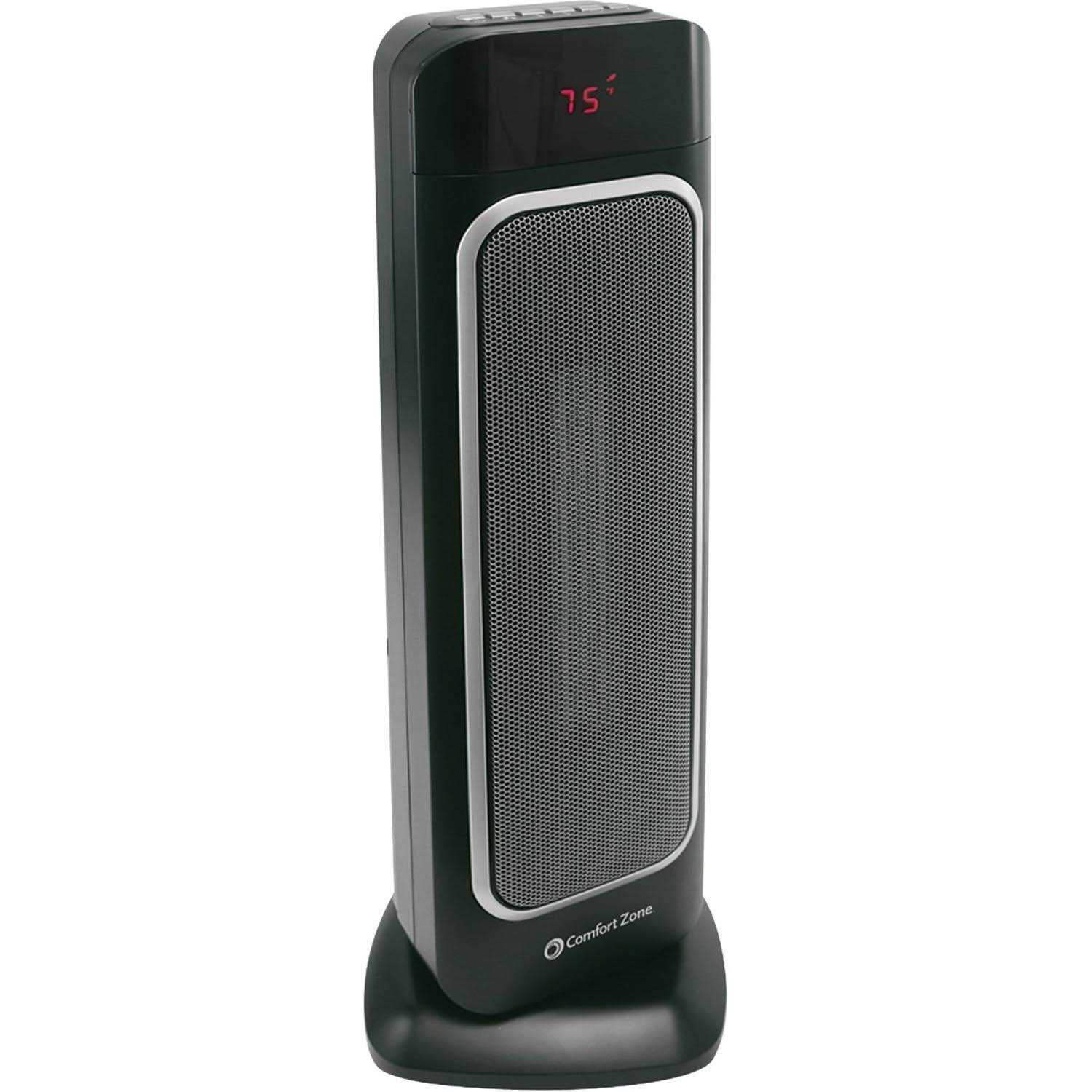 Comfort Zone Offering 1500 W of power, this digital tower heater is capable of warming medium-sized living rooms with ease. The adjustable heat settings can be tailored to the needs of your environment, so you can lower the heat as your room gets some afternoon sun or turn up the heat for chilly winter evenings. Designed to circulate air in the most efficient way possible, this fan-forced tower heater features an oscillating fan that rotates from side to side to create a powerful breeze. This oscillating function helps disperse the airflow and provide heat to the farthest corners of a room in just a few minutes. The advanced safety system includes a tip-over cutoff switch in case the unit is accidentally knocked over, an overheat protection sensor with automatic shut-off in the event of overheating and stay-cool housing. Feel secure setting up the tower heater with remote beside your desk while you work or place it across from your bed while you sleep. Featuring an eco-friendly mode that limits the amount of energy the tower heater draws, this digital tower heater lets you monitor your energy consumption and adjust the heat setting to minimize your usage and reduce your electricity bill. A large, easy-to-read digital display informs you of the room’s current temperature and a full-function remote control allows for easy temperature control from across the room.