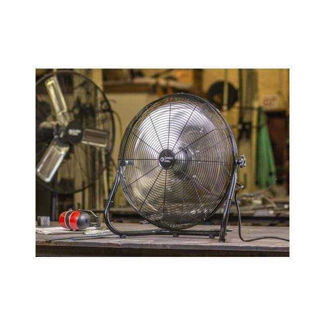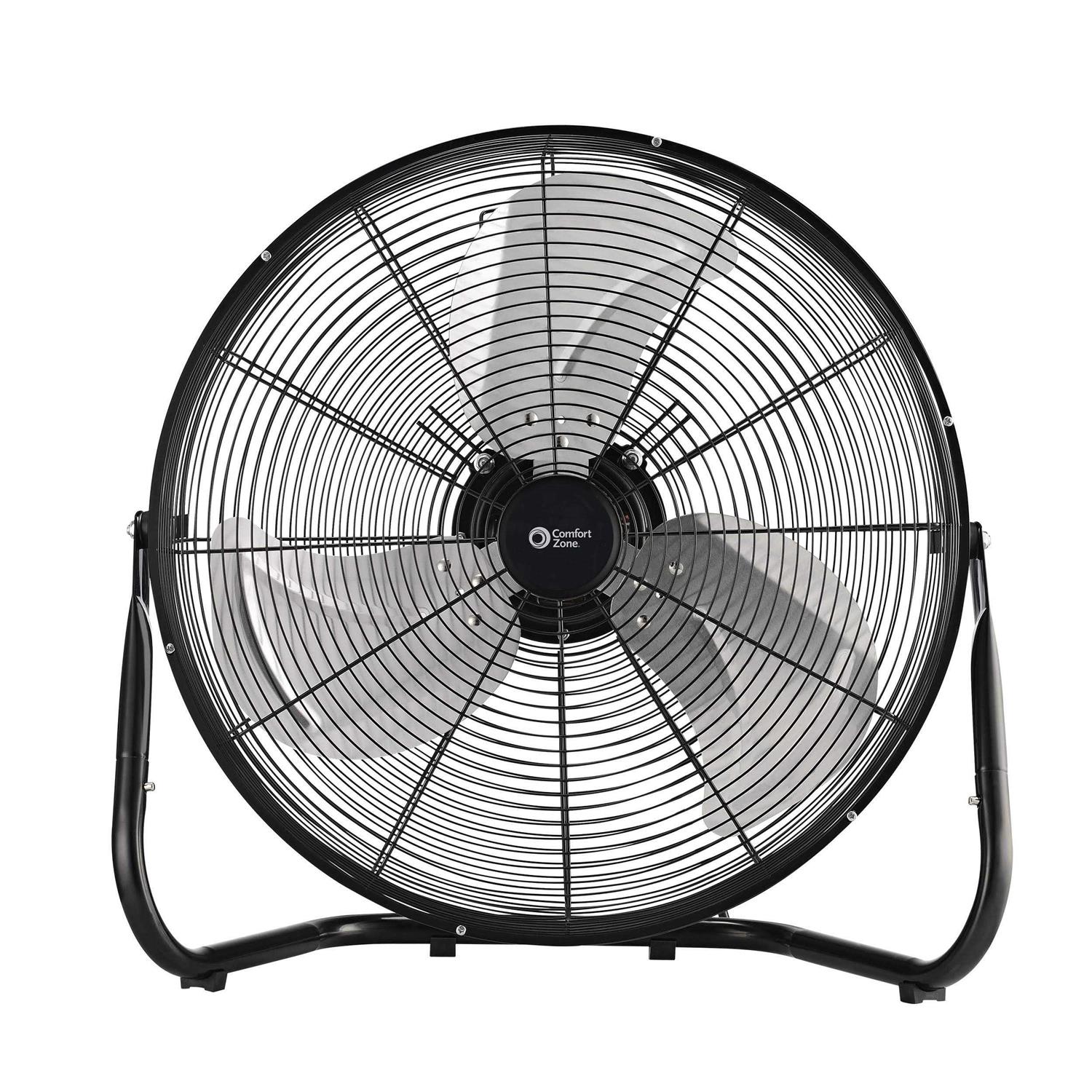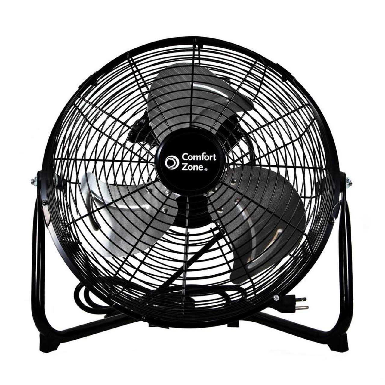 Comfort Zone Cool off in style with the convenient and powerful Comfort Zone 20″ 3-Speed High-Velocity Floor Fan. Equipped with three high-velocity speed settings, these floor fans are designed to provide efficient air circulation and optimized airflow that fits your space and your comfort level. Whether you’re using this floor fan for office or home use, you can easily direct the airflow where you need it with the 180-degree adjustable vertical tilt function. Simply place the fan on the floor and then angle the head of the fan to the position that best suits your needs. The high velocity motor delivers powerful airflow for lasting comfort in your bedroom, living room or any room where it is needed. There’s no need for wall-mount installation with this convenient cradle design. Simply place this 3-speed floor fan on the ground and adjust the tilt to direct the airflow. The compact cradle design and neutral black colouring fit easily in with most decors, and the built-in carry handle allows for quick and convenient transport from surface to surface or from room to room. Strong, all-metal construction ensures these durable floor fans deliver lasting performance while rubber feet add stability and eliminate vibrations. A grounded cord set meets all OSHA requirements, and the 3-speed floor fan is equipped with a safety grill to protect users’ fingers and other objects from the moving blades while they are in operation.
