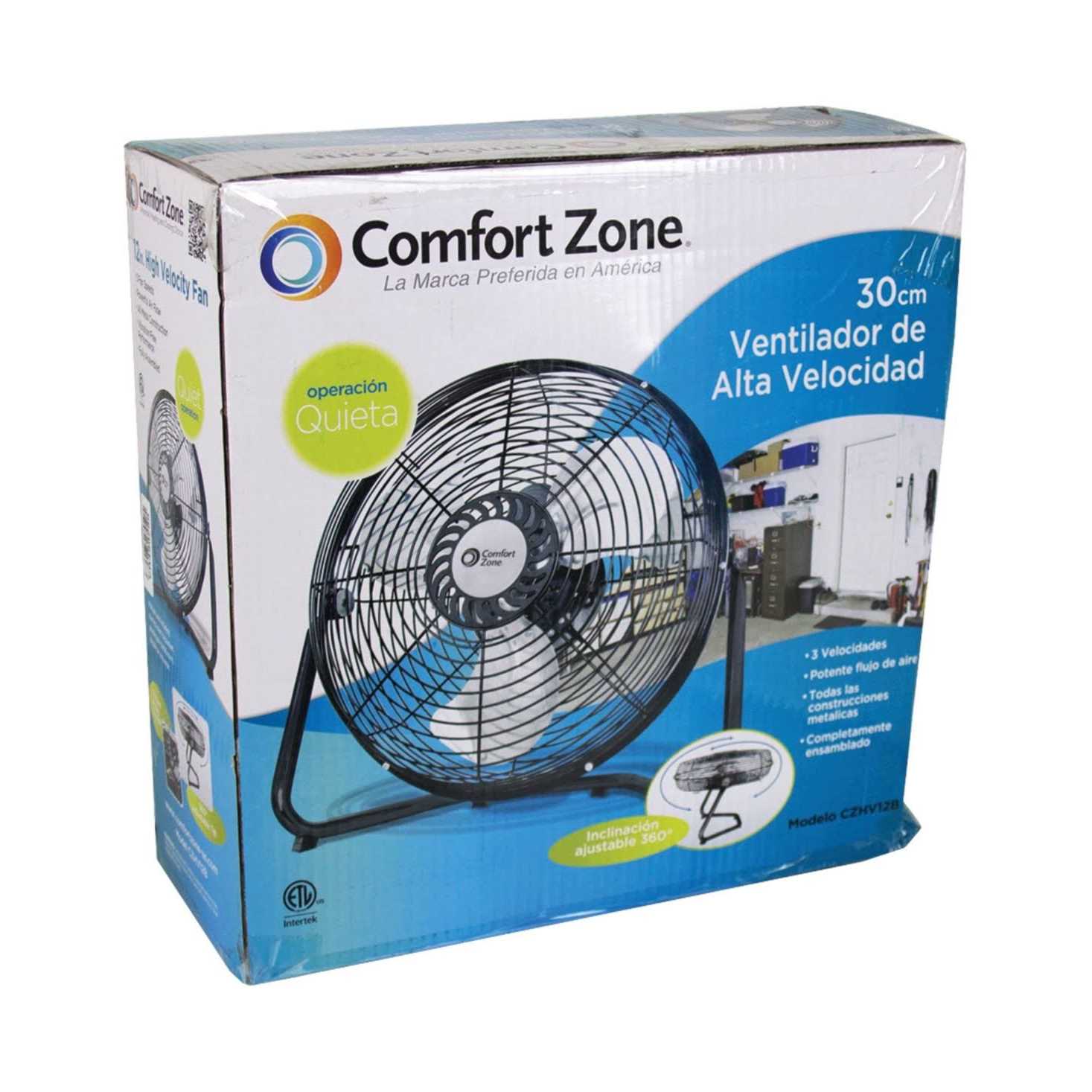 12″ high-velocity cradle fan. Adjustable horizontal tilt. 3 adjustable fan speeds to customize air flow. Tough all-metal construction. 360 degree adjustable vertical tilt. Convenient carry handle. 3 tough, break-resistant metal blades. Metal safety grille to prevent user injuries or damage to the fan. Quiet, vibration-free performance. Ideal for use in medium to large sized rooms. Weighs just 7lbs.