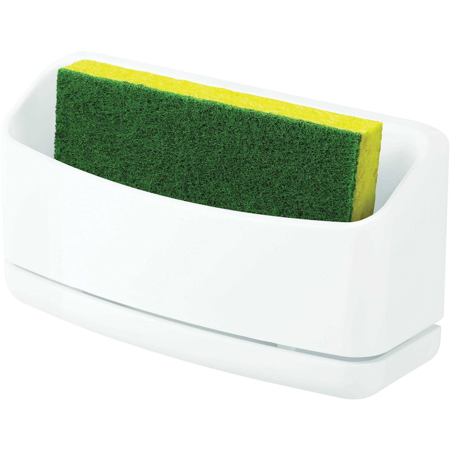 Keep the sink tidy with the Command Under Sink Sponge Caddy. Your sponge stays out of sight, but within reach when needed, by hanging it under the sink cabinet or on tile backsplash. Drain holes in the caddy allow excess water to drip out. Tray at the base catches any drippy mess but removes for quick cleaning. Using revolutionary Command Adhesive, Command products hold strongly on a variety of surfaces, including paint, wood, tile and more. Caddy removes cleanly – no holes or sticky residue. Both caddy and tray are dishwasher-safe. Caddy comes with four medium mounting strips and one Scotch-Brite Heavy-Duty Sponge. The included sponge works on a variety of indoor surfaces, such as painted drywall, finished wood, tile, metal and glass.