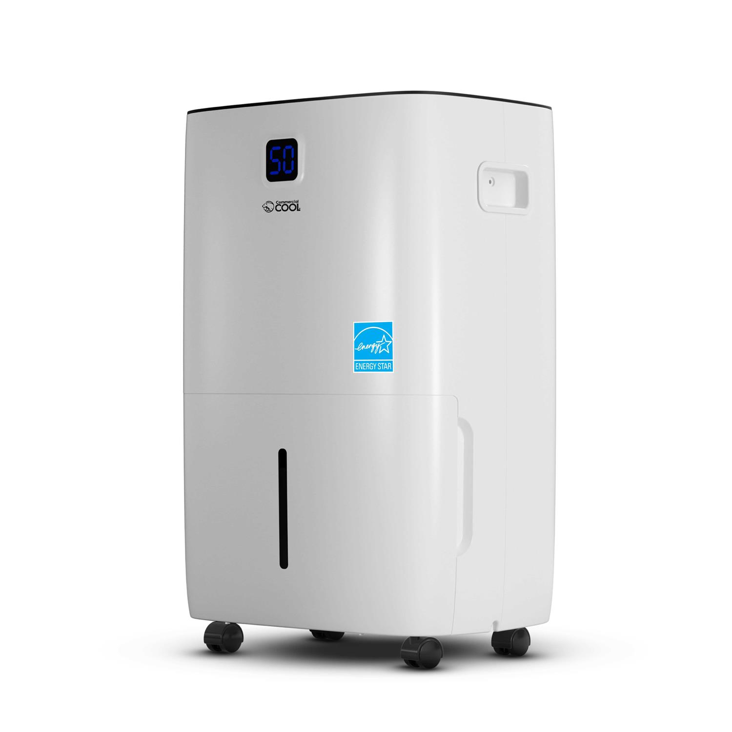 This COMMERCIAL COOL best dehumidifier with pump extracts up to 50 pints of water every 24 hours rooms up to 4500 sq. ft. Our Energy Star dehumidifier 15.7in x 12.4in x 25.8in has a top mounted electrical control panel and humidistat control from 35%-80%. When it comes to humidifiers for large room, ours comes with a continuous drain pump 44 lbs. and 16.4 ft. hose, as well as casters and recessed handles so you can transport easily from room to room. When it comes to dehumidifiers 50 pint and dehumidifiers for bedroom, this safe dehumidifier and dehumidifier with pump built in is your best bet. With 24-hour on/off timer and child lock, preset humidity settings, a 7L/14.8 pint water tank, and self-diagnosis with auto cut off protection — this smart portable dehumidifier for rooms is clearly the best around. With a tank water level indicator, 3 fan speeds, auto defrosting and auto restart and a filter clean warning indicator, this COMMERCIAL COOL house bedroom dehumidifier and dehumidifier machine is your solution to quality, breathable air. Our Energy Star 50 pint dehumidifier home has compressor exhausting temperature protection and takes R-32 refrigerant. So what are you waiting for? Get your new dehumidifier 50 pint and dehumidifier pump built in right away so you can enjoy an amazing home environment.
