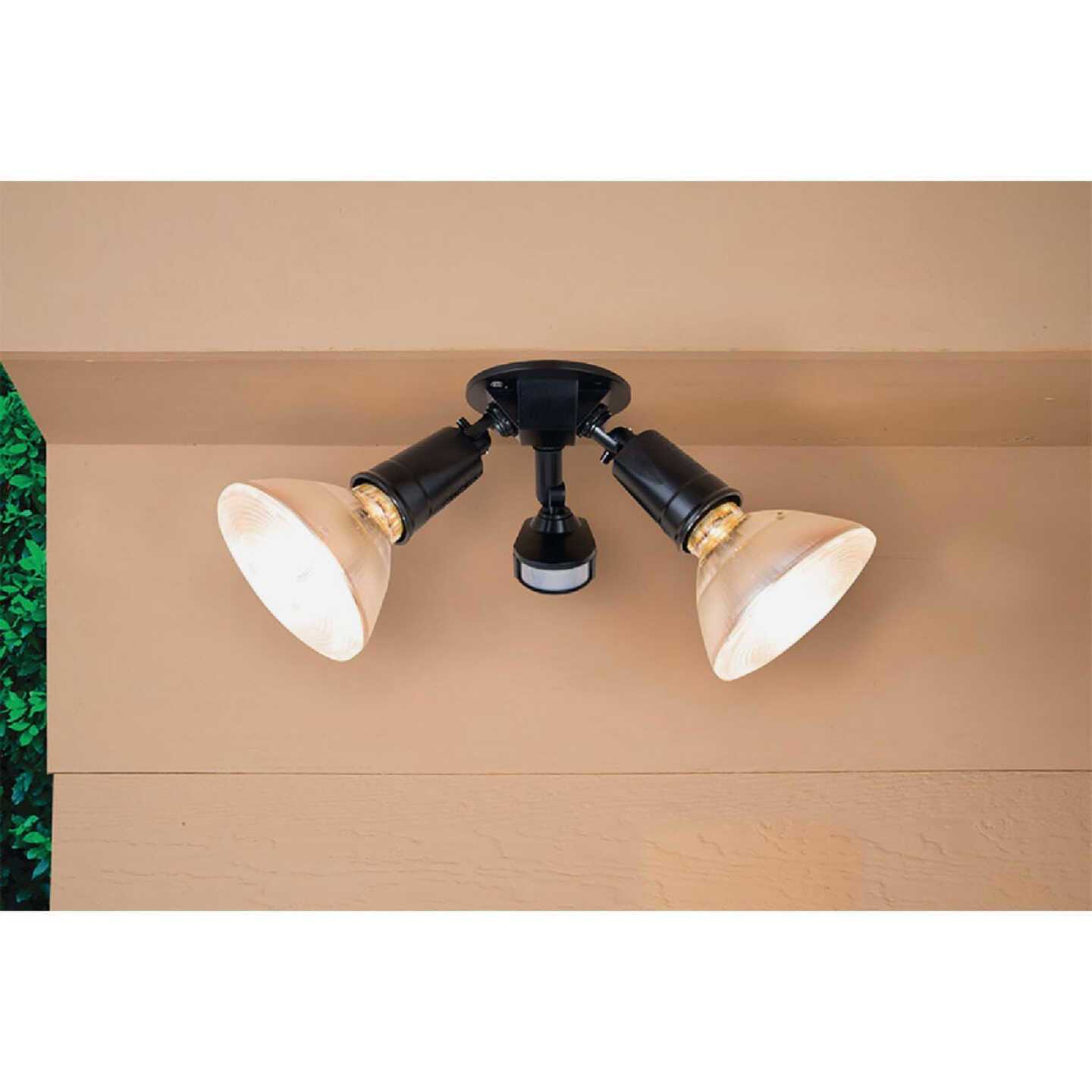 Introducing the Cooper Lighting 110 Degree Motion Detector Floodlight in sleek black! Illuminate your surroundings with this cutting-edge motion sensor floodlight that takes security and convenience to a whole new level. With its impressive 110° motion detection range, this floodlight can sense movement up to 60 ft away, ensuring that no activity goes unnoticed. Crafted from durable plastic, it is built to withstand the elements and provide reliable performance year after year. Whether you prefer a wall-mount or eave-mount setup, this versatile floodlight is perfect for both. Simply install it in your desired location and enjoy enhanced visibility and peace of mind. Please note that the (2) 150-Watt PAR bulbs needed to power this floodlight are sold separately, allowing you to choose the brightness that suits your needs. Available in black (MS34) and white (MS34W), you can select the color that seamlessly blends with your exterior decor. Thanks to its advanced motion sensor technology, this floodlight automatically activates when it detects movement. No more fumbling for switches in the dark! Plus, after a pre-selected time delay, it will turn off on its own, conserving energy and ensuring hassle-free operation. Rest assured, this floodlight is UL/cUL Listed and RoHS compliant, meeting the highest safety standards. You can trust its quality and performance to keep your property well-lit and secure. It’s time to take control of your surroundings and enjoy the convenience of automatic lighting.
