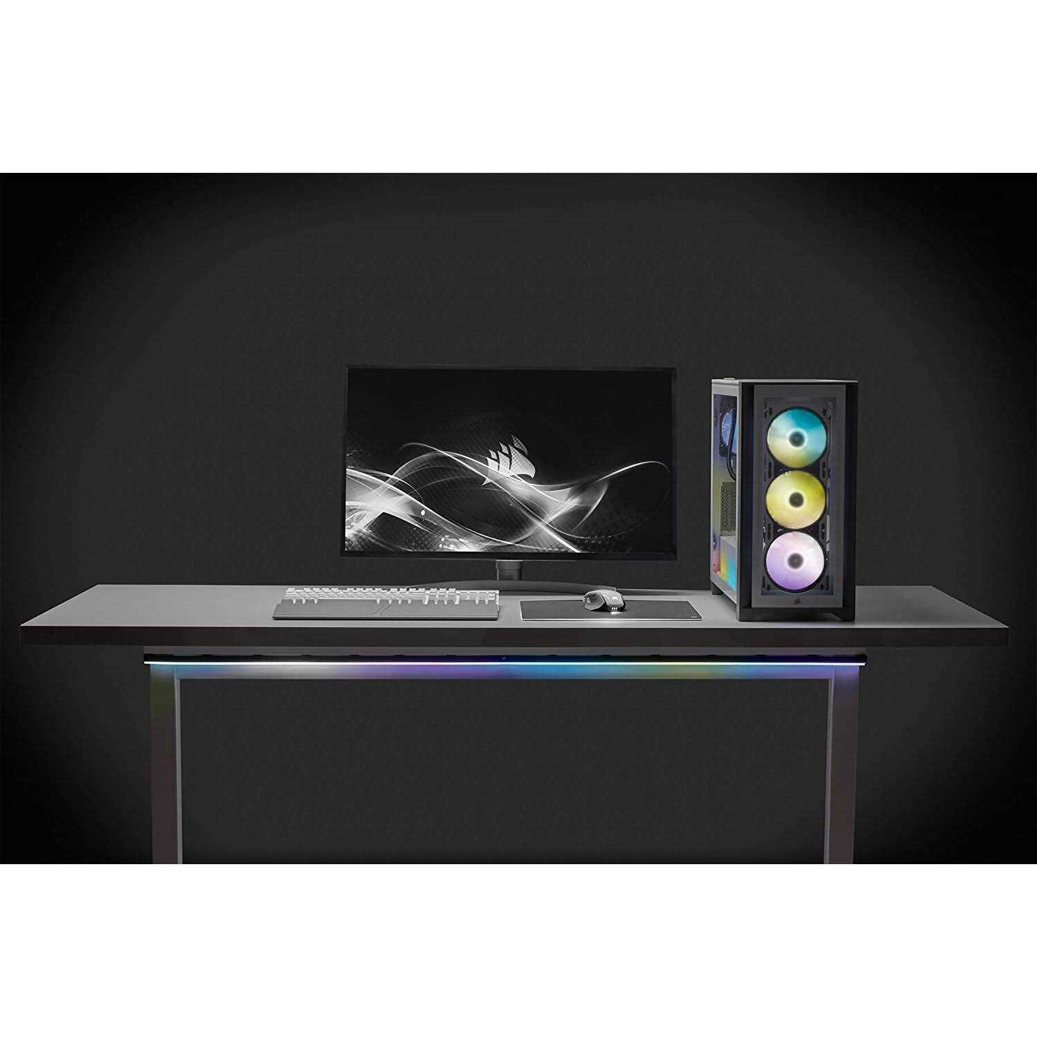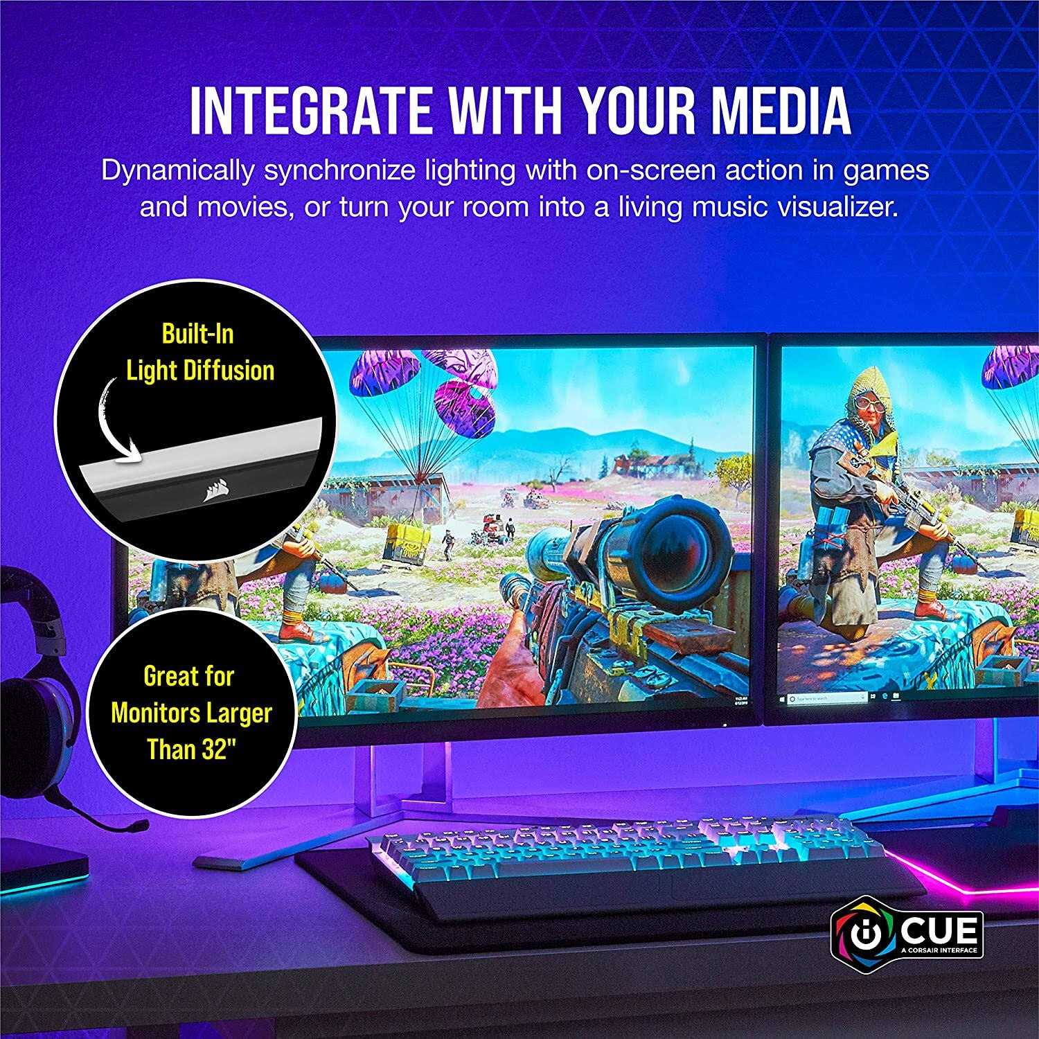 The Corsair iCUE LS100 Lighting Kit from Corsair is a must-have for those looking to elevate their gaming or entertainment setup. This lighting kit is designed to bring your space to life with vibrant and customizable lighting effects. With the power of Corsair’s iCUE software, you can easily synchronize and control the lighting across all compatible devices, creating a harmonious and immersive experience. The LS100 Lighting Kit includes long strips of addressable RGB LEDs that can be conveniently placed around your room or behind your monitor. These LEDs are capable of producing a wide range of colors and effects, allowing you to personalize your space to match your mood or game atmosphere. Whether you want a calming ambient glow or an intense pulsating light show, the possibilities are endless. Installation is a breeze with the included adhesive backing, ensuring a secure and seamless placement of the LED strips. Plus, with the added flexibility of being able to cut and extend the strips, you can easily adapt the lighting to fit your specific setup. Transform your gaming or entertainment space into a visually stunning environment with the Corsair iCUE LS100 Lighting Kit. Let your creativity shine and immerse yourself in a world of captivating colors and effects.