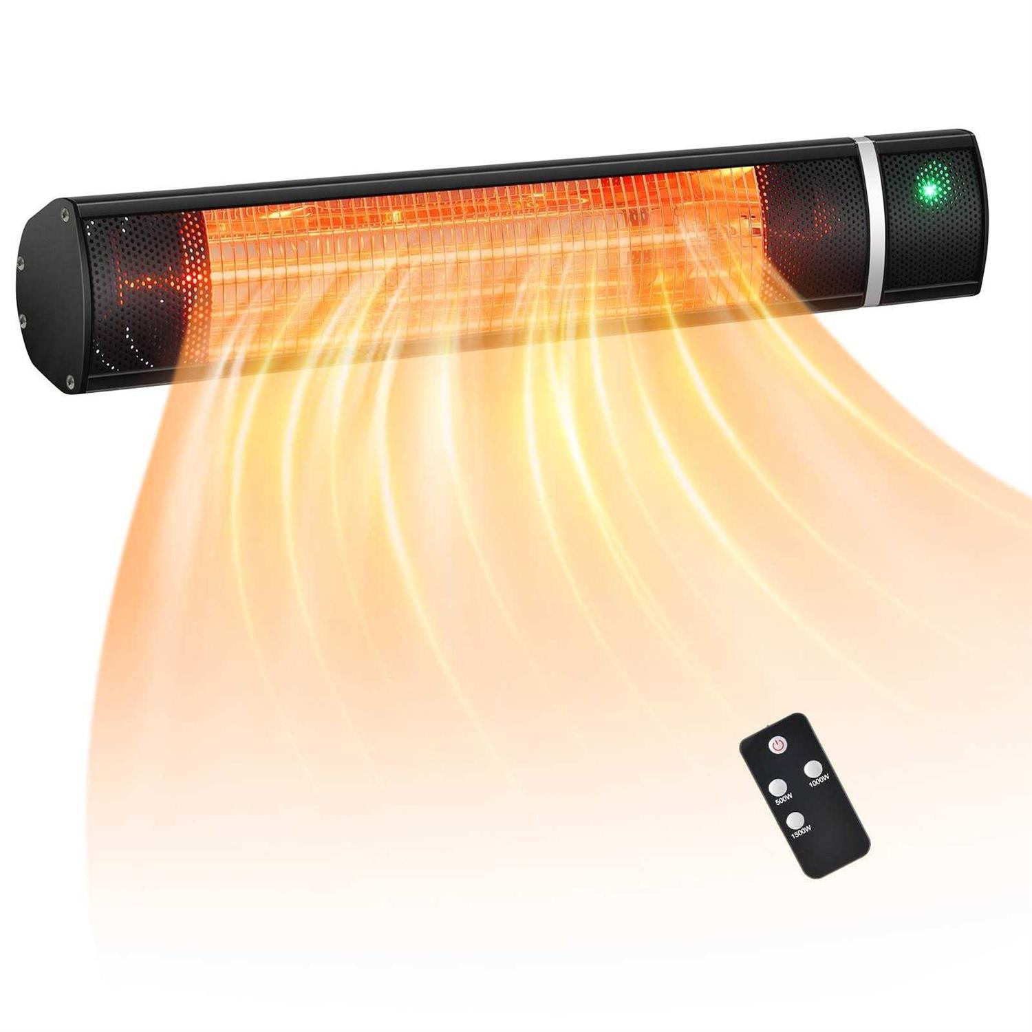 Costway Wall-Mounted Patio Heater 750W/1500W Infrared Heater with 9-Level Adjustable 24H Timer & Remote Control