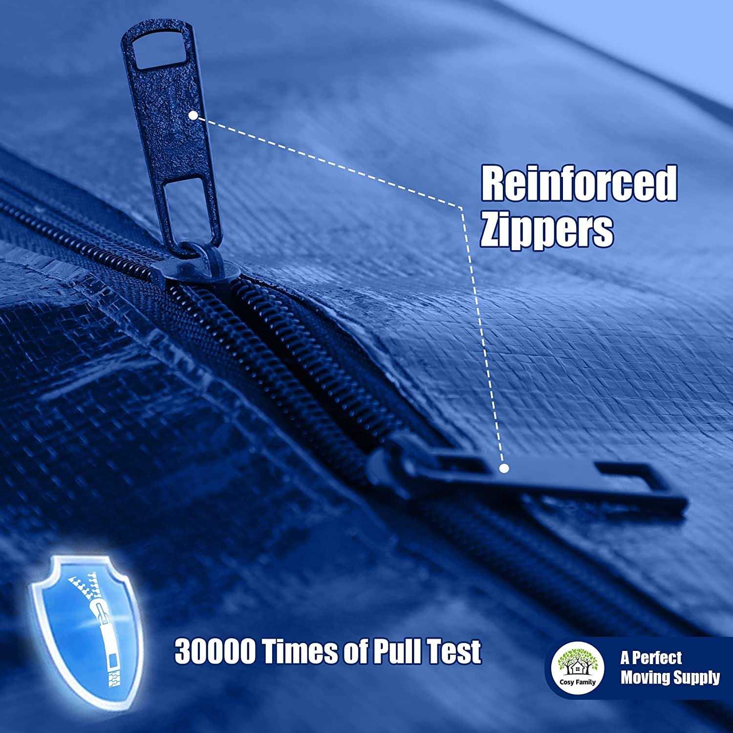 EXTRA LARGE SIZE: 29″ W X 13″ H X 14″ D – 86 Liters or 24 Gallon. They will safely hold up to 65 lbs. Strong moving storage bags in the market. These bags are made from durable woven 180 gsm coated polypropylene woven material. EASY TO USE GREAT FOR MOVING: Cosy Family Extra Large Moving Bags plenty of room to store and protect just about anything. These bags are very mobile and are a lightweight, economical alternative to moving boxes. College students love these bags in and out of college dorms. UPGRADED WIDE WEBBING: Reduced Stress On Hands And Shoulders. UPGRADED SEWING PROCESS: Not Broken. Not Punctured. UPGRADED REINFORCED ZIPPERS: 30000 Times of Pull Test. STURDY AND EASY TO CARRY: A set of long handles along with an extra back shoulder strap allows you to carry the bag like a backpack. Easy to store in the closet, garage or under the bed. CONVENIENT: No need to go through the hassle of dismantling boxes and wasting space to store them, these bags can be fully folded down to a small size for easy storage in drawers, closets, cars or luggage. MULTI-PURPOSE: These oversized storage bags are great for storing, transporting, and organizing a variety of items, including clothes, toys, shoes, towels, supplies, pillows, bedding, sheets, blankets, clothing, Christmas decorations, and more! These bags are great for travel when you have extra stuff that doesn’t fit in your luggage, or you’re going home with extra stuff on the go. Great way to get rid of clutter and organize everything. These bags are compatible with IKEA Frakta trolleys.