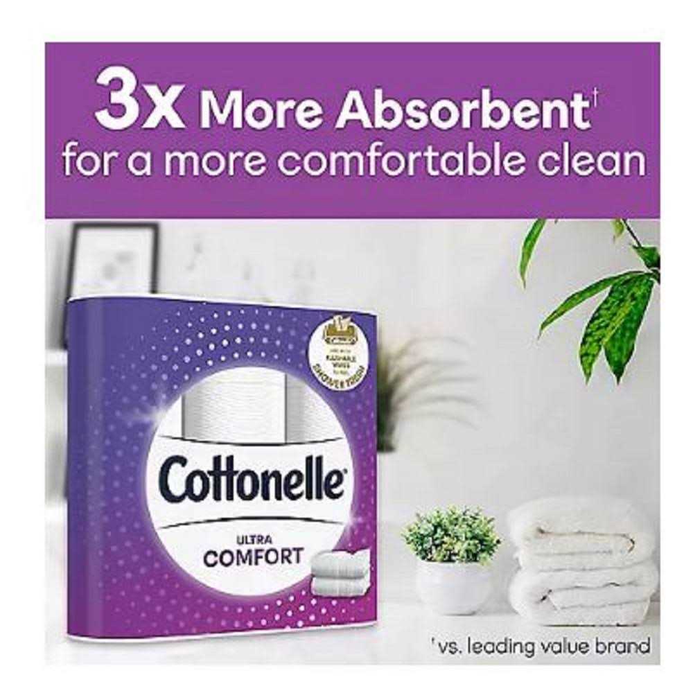 Get the superior performance and softness you’ve been waiting for with Cottonelle Ultra Comfort Toilet Paper, designed to leave you comfortably dry. The extra soft cleaning ripples are safe for sensitive skin and cleans gently while removing more moisture*. Premium, soft 2-ply toilet paper, Cottonelle Ultra Comfort toilet tissue is 3x more absorbent than the leading value brand in order protect your hands and bottom as you cleanup. Cottonelle is septic-safe and clog-free. Each Mega Roll has 268 sheets per roll so you can worry less about running out when you or guests at your home need it most.Looking for more ways to feel clean down there after taking care of business? Use Cottonelle flushable wet wipes to feel shower fresh 3x longer. Cottonelle cares about you and our planet. Clean with toilet paper, cleanse with flushable wipes and feel confident.