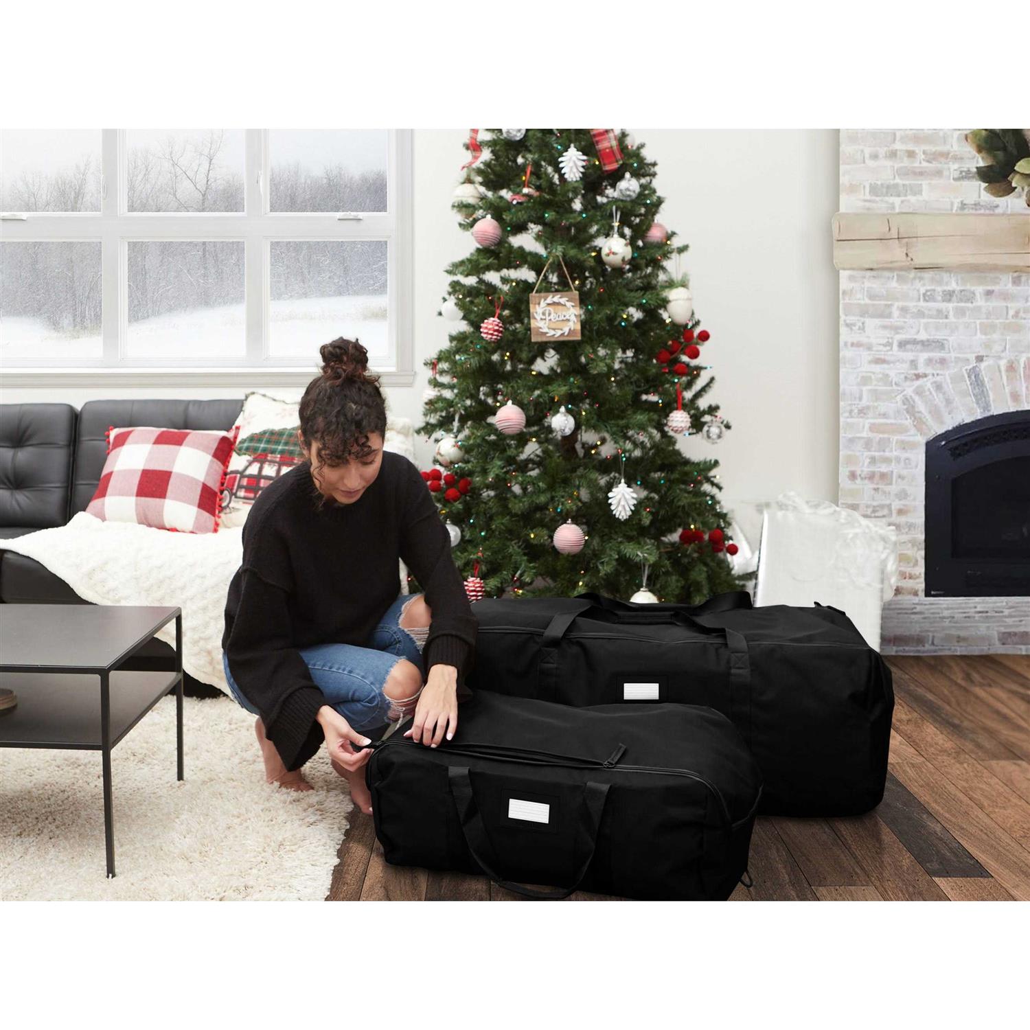 Keeping your tree in the original box never goes quite as planned; it ends up covered in tape and falling apart, exposing your tree to dust and damaged branches. Trees are also heavy and trying to move them to/from the attic or garage can be a real hassle. Designed with strength and durability in mind, this storage bag is made from thick polyester that stands strong against branches that would puncture or tear most bags. Reinforced carrying handles also give you the added advantage when transporting your tree and decorations. To maximize your space, a heavy-duty D-ring allows for convenient upright hanging. Using our tree storage option will make moving and protecting your tree easier than ever year after year.