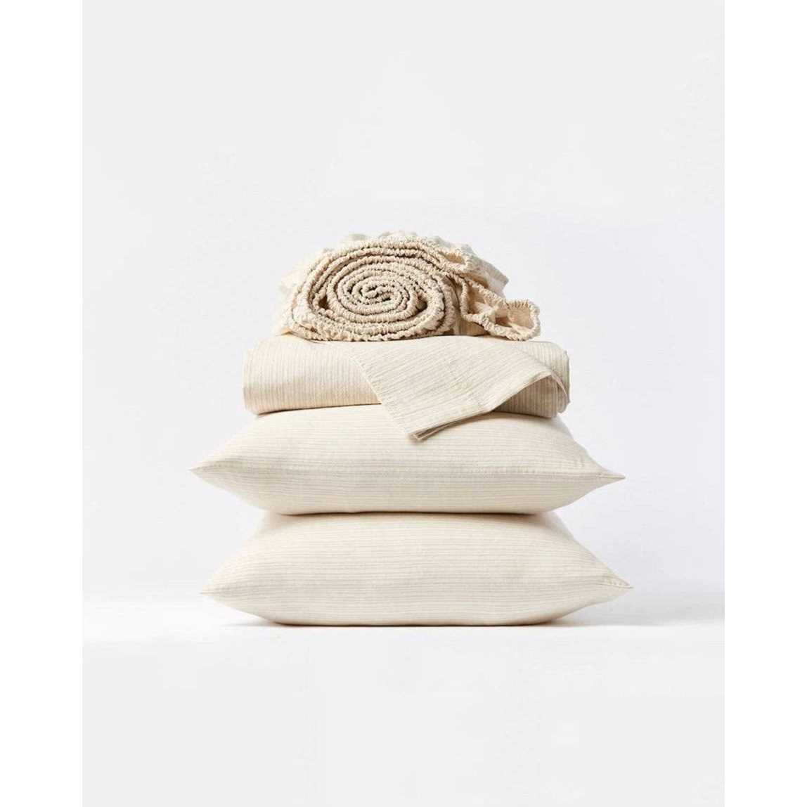 Perfectly dreamy crinkles and skin-caressing crumples hold space for your body through the ebb and flow of seasons. Relax in waves of our softest percale—naturally breathable and irresistibly smooth. Experience the raw beauty, resilience, and nurturing comfort of pure organic cotton sheets.