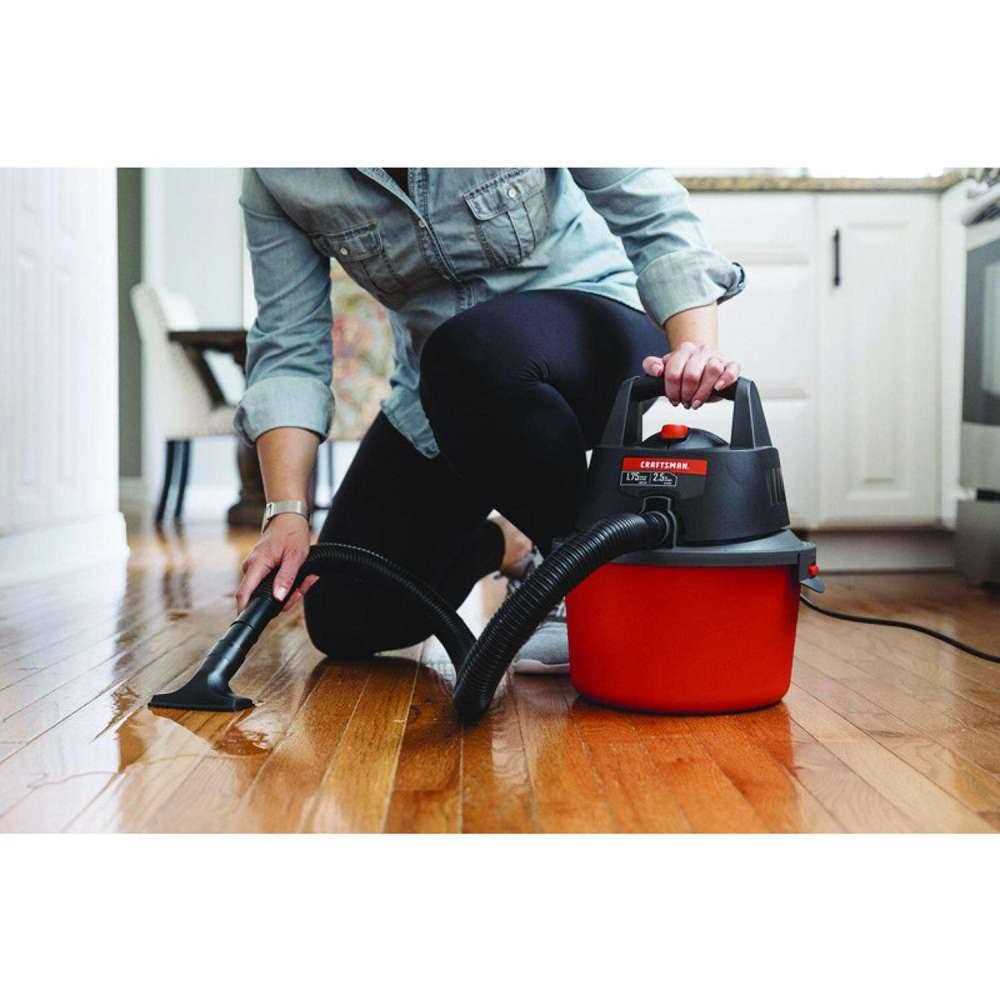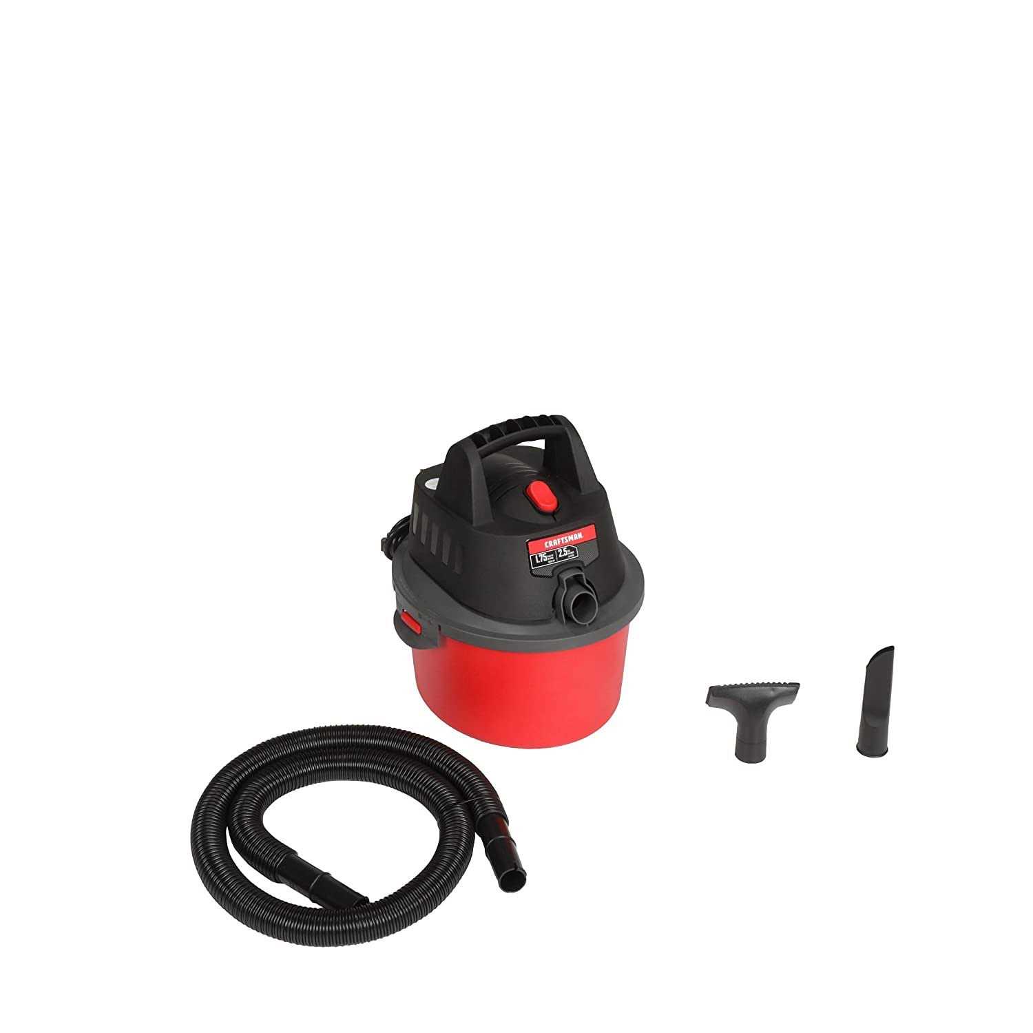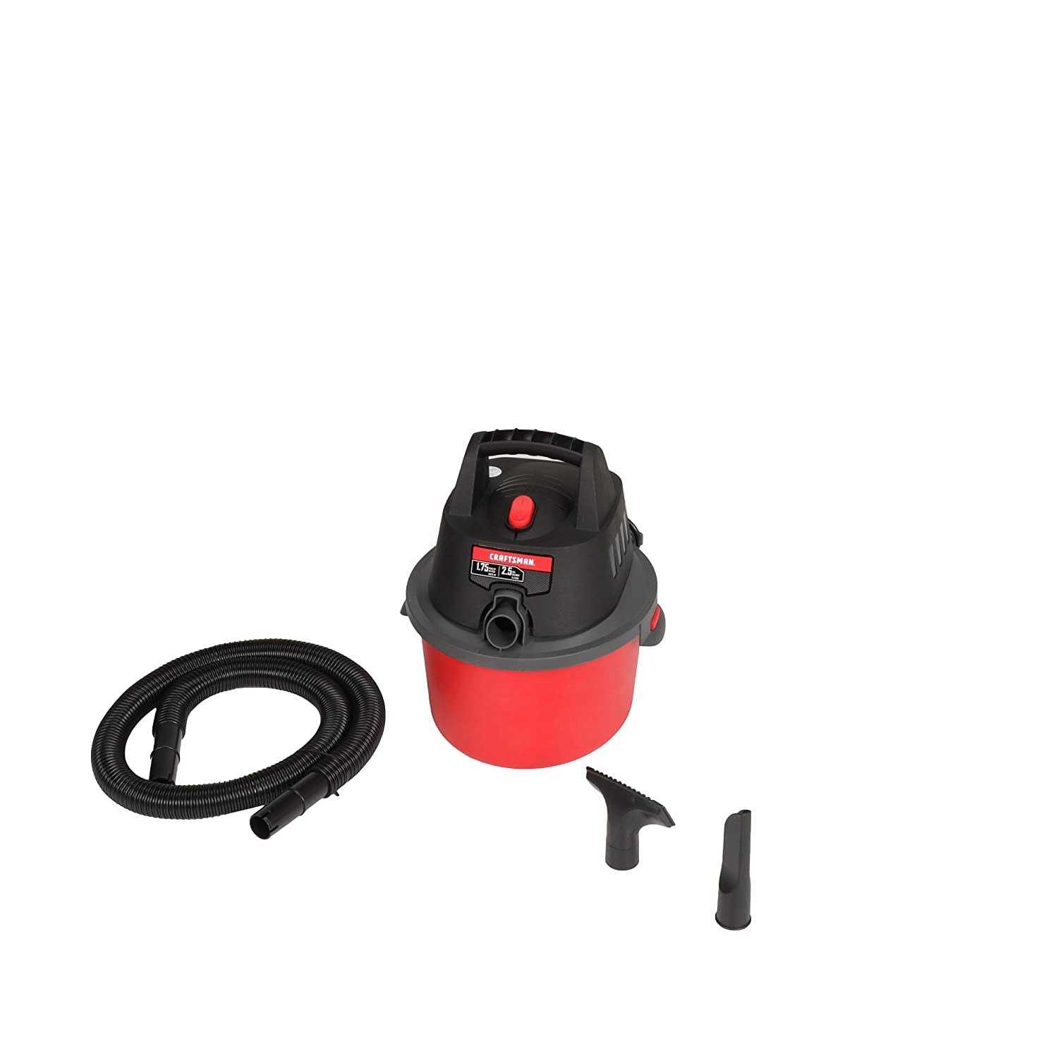 The CRAFTSMAN 2.5 Gallon Wet/Dry Vac with a 1.75 Peak HP motor is great at home in the garage or jobsite detail cleaning. Its equipped with the crevice tool to clean hardtoreach places and the utility nozzle good for a quick garage cleanup. This 2.5gallon wet dry vac can also be used as a blower making it a great twoinone tool. If youre looking for a portable solution for small messes requiring little storage space this vacuum is the answer.