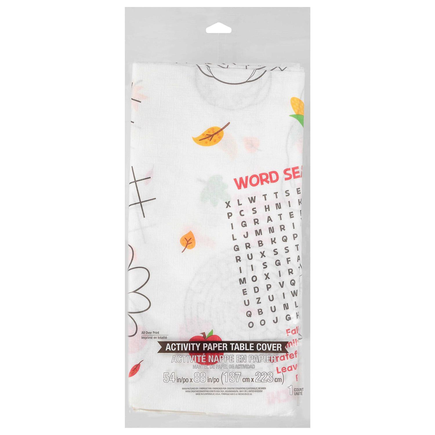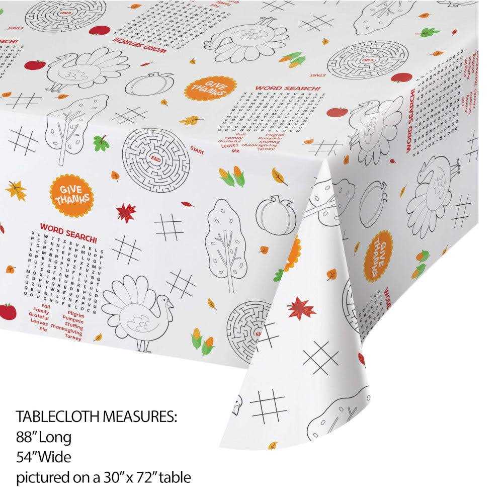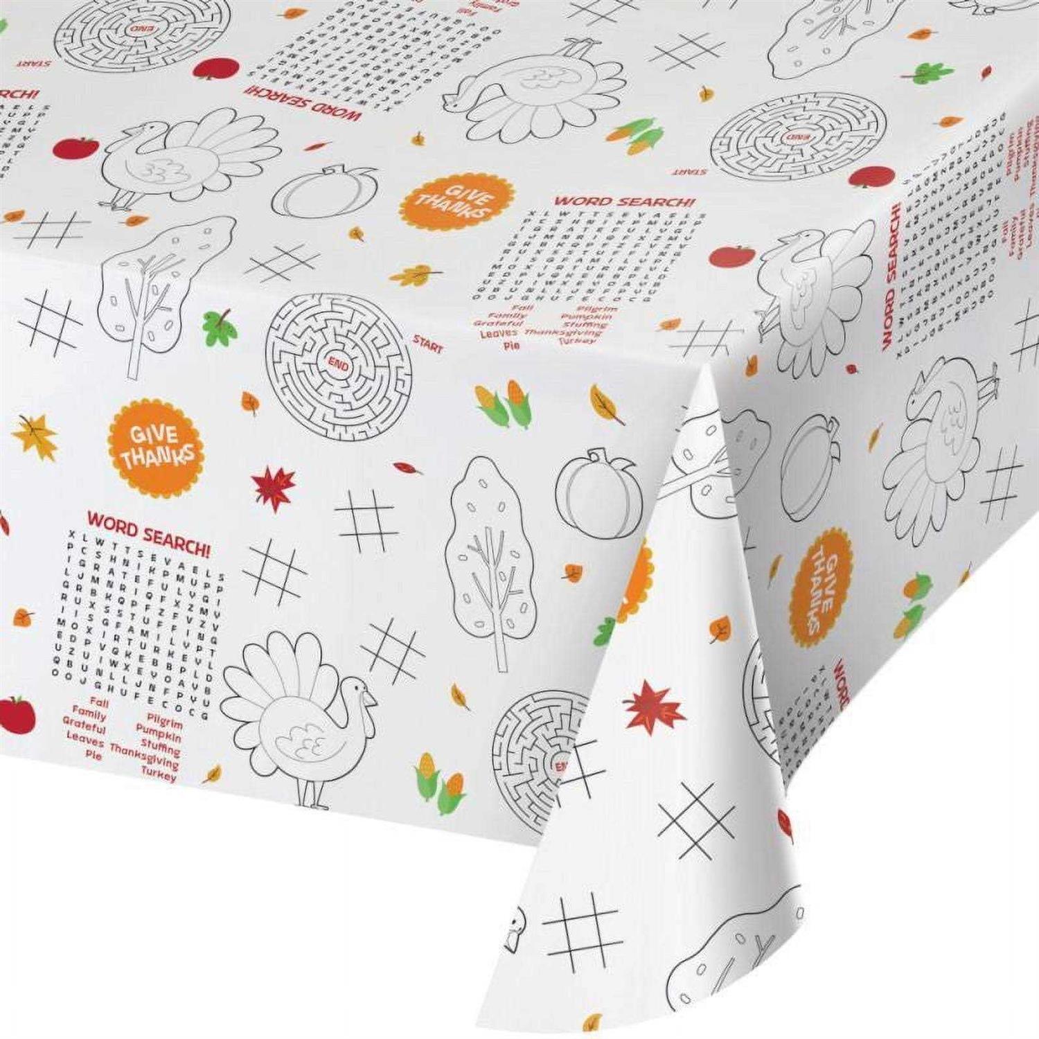 Our Tablecover, Paper, Thanksgiving Activity is the perfect addition to your holiday decorations! This paper tablecover measures 54″ x 88″ and features a black, orange, and white theme with autumn-themed games and activities. It’s perfect for event planners, caterers, and home hostesses alike. With our Thanksgiving Activity Paper table cover, you can easily create a festive atmosphere for your Thanksgiving celebration. Add it to your Thanksgiving party accessories and decorations for a complete look.