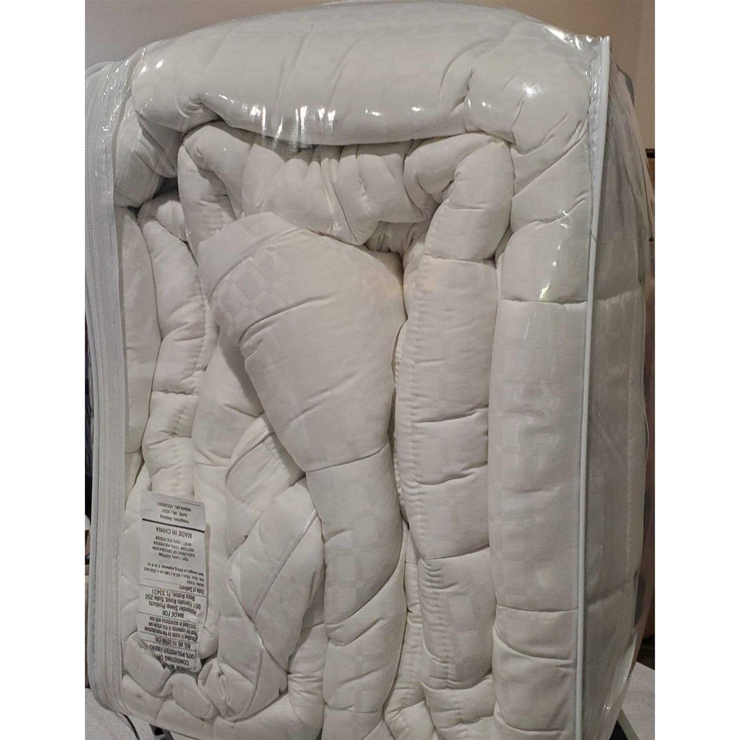 Luxurious comfort. You’ll sleep better with the added comfort of this mattress pad. The 18-in. one-way stretchable knitted skirt has an elastic overlook around the bottom, and the R-tech patented technology gives it a stain resistant feature.