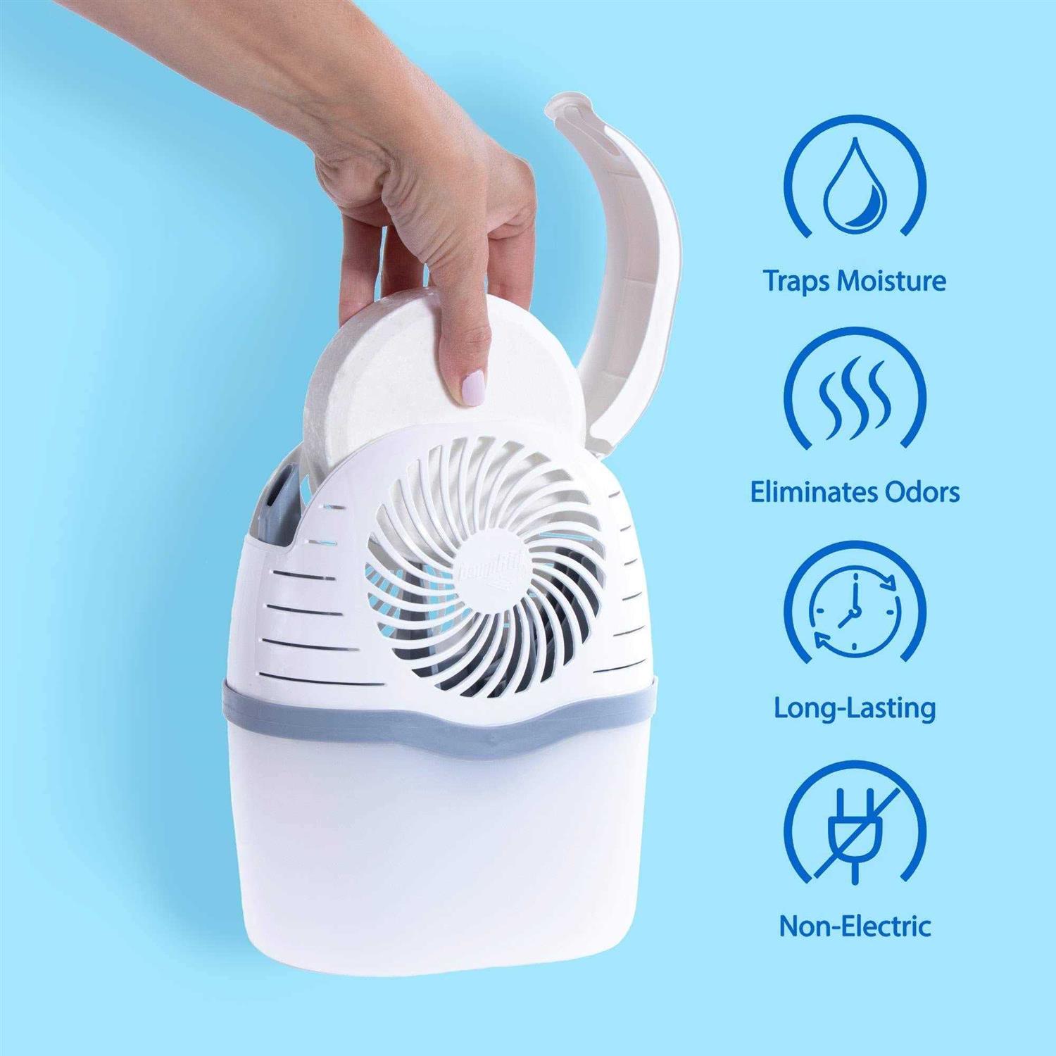 Kitchen & Dining Features by DampRid. Details:DampRid Drop-in Tab Refill Pack contains two 15.8-ounce moisture absorbing tablets. When paired with the Reusable Moisture Absorber Starter Kit, they attract and trap excess moisture and eliminate musty odors. The 360-degree ventilation system enhances airflow, making it our fastest acting moisture absorber. To use, simply insert an unwrapped tablet into the top of the moisture collection unit. DampRid absorbs moisture without use of electricity or batteries. Blends in with any home decor and can be used discreetly in various locations. Place these moisture absorbers in bathrooms, basements, utility rooms, garages, laundry rooms or storage lockers – anywhere damp, stagnant air is a problem. DampRid Reusable Moisture Absorber with Drop-In Tab Starter Kit is sold separately. Refill tabs are available in Fresh Scent and Fragrance Free. Keep out of reach of children. Read and follow all label directions.