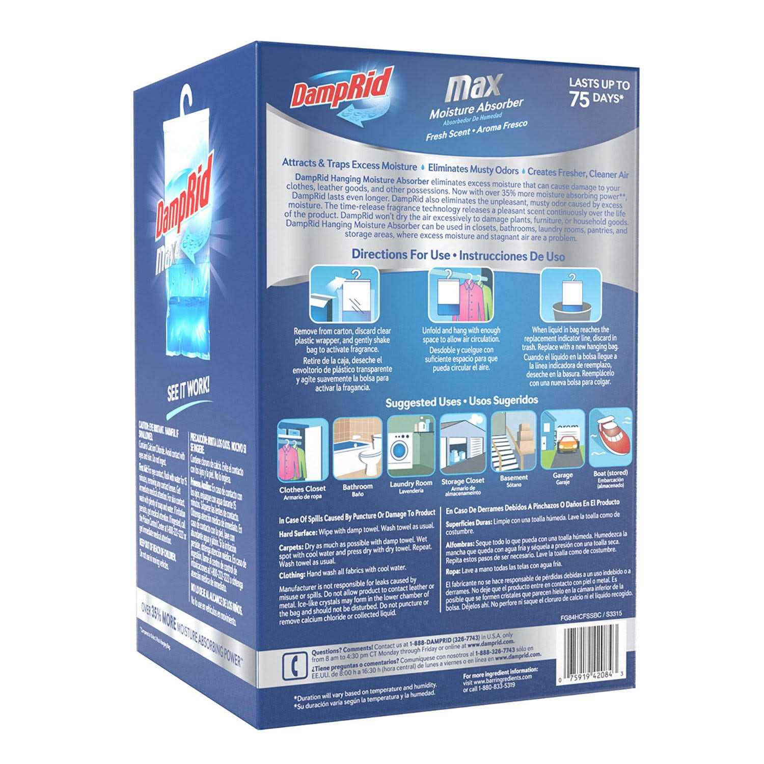 DampRid Hanging Bag Moisture Absorbers attract and trap excess moisture out of the air. Think of it as a dehumidifier without electricity, absorbing excess moisture to create and maintain optimal humidity levels wherever dampness and musty odors are a problem. Time-release fragrance technology releases a pleasant scent continuously over the life of the product. DampRid Hanging Bag Moisture Absorbers are ideal for closets, but they’re also great for laundry rooms and storage areas where clothes and other fabrics often collect unpleasant, musty odors. Plug-In Air Fresheners Household supplies
