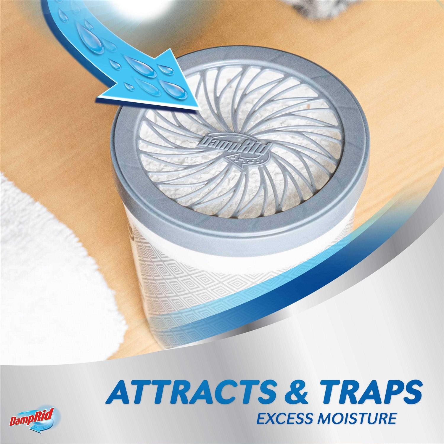 Don’t just cover up odors, eliminate them with DampRid Refillable Moisture Absorbers. Think of DampRid as a dehumidifier that doesn’t need electricity. These moisture absorbers are a convenient, effective way to absorb excess moisture in the air that can cause stale, musty odors. DampRid refillable moisture absorbers last up to 45 days depending on temperature and humidity level. DampRid inhibits mold and mildew with the power of Microban. The decorative design blends in with home decor. DampRid Refillable Moisture Absorbers are ideal for closets, bathrooms, laundry rooms, pantries, under sinks, and anywhere excess moisture and stagnant air are a nuisance. Keep out of reach of children. Do not use in moving vehicles. Do not allow product to contact leather or metal.