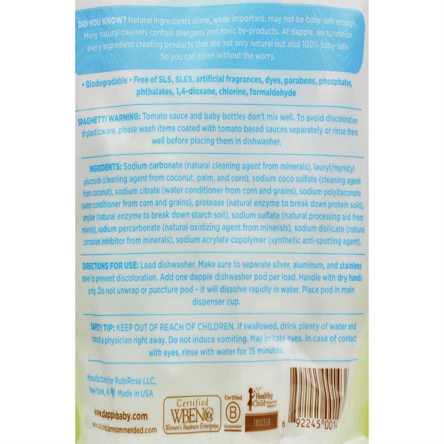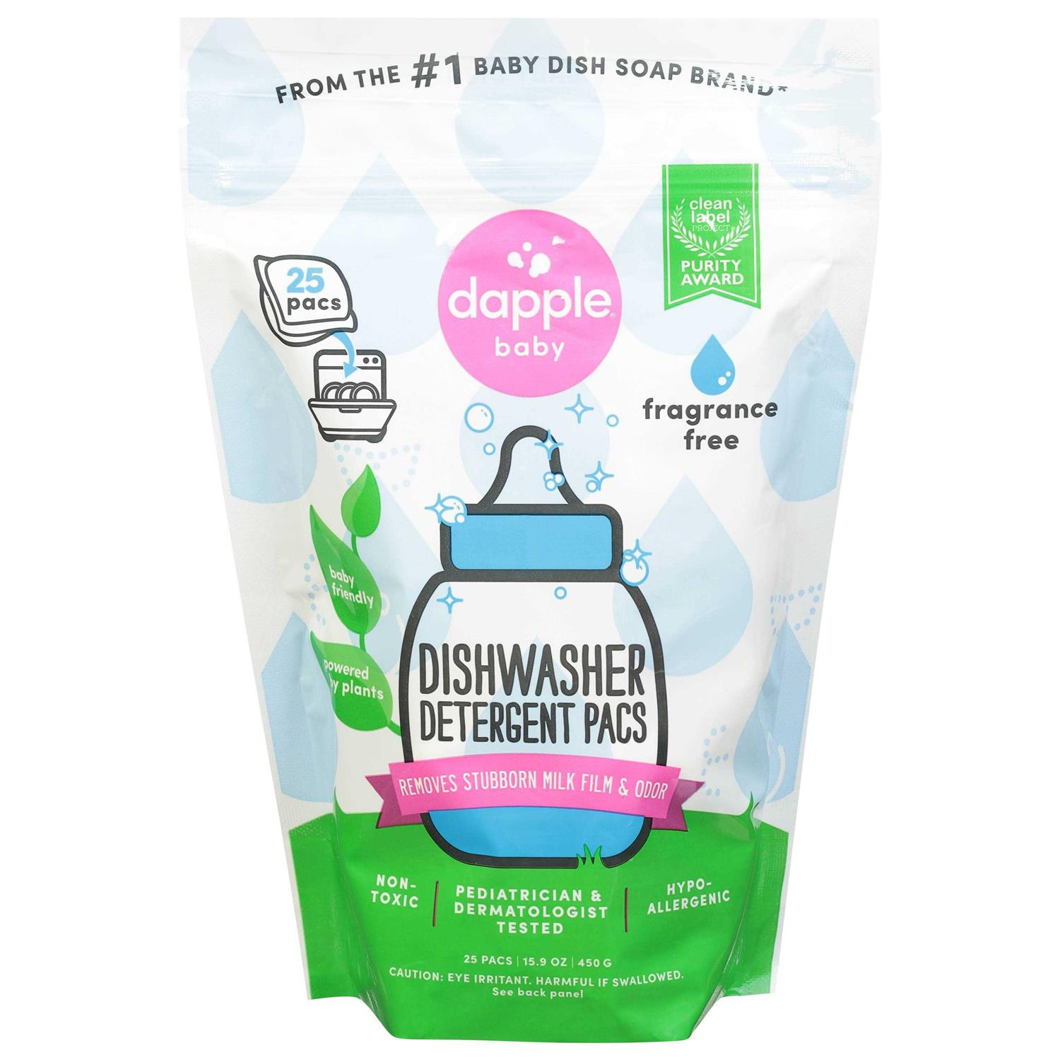 Bring the power of Dapple into your dishwasher! Dapple Dishwasher Detergent Pacs are specially formulated to work on the residues left behind by breast milk and formula, yet versatile enough to clean everything in your dishwasher. Raising a baby isn’t easy, but Dapple’s here to help with our easy, no-mess Dishwasher Detergent Pacs. Just pop them in the dishwasher and go!