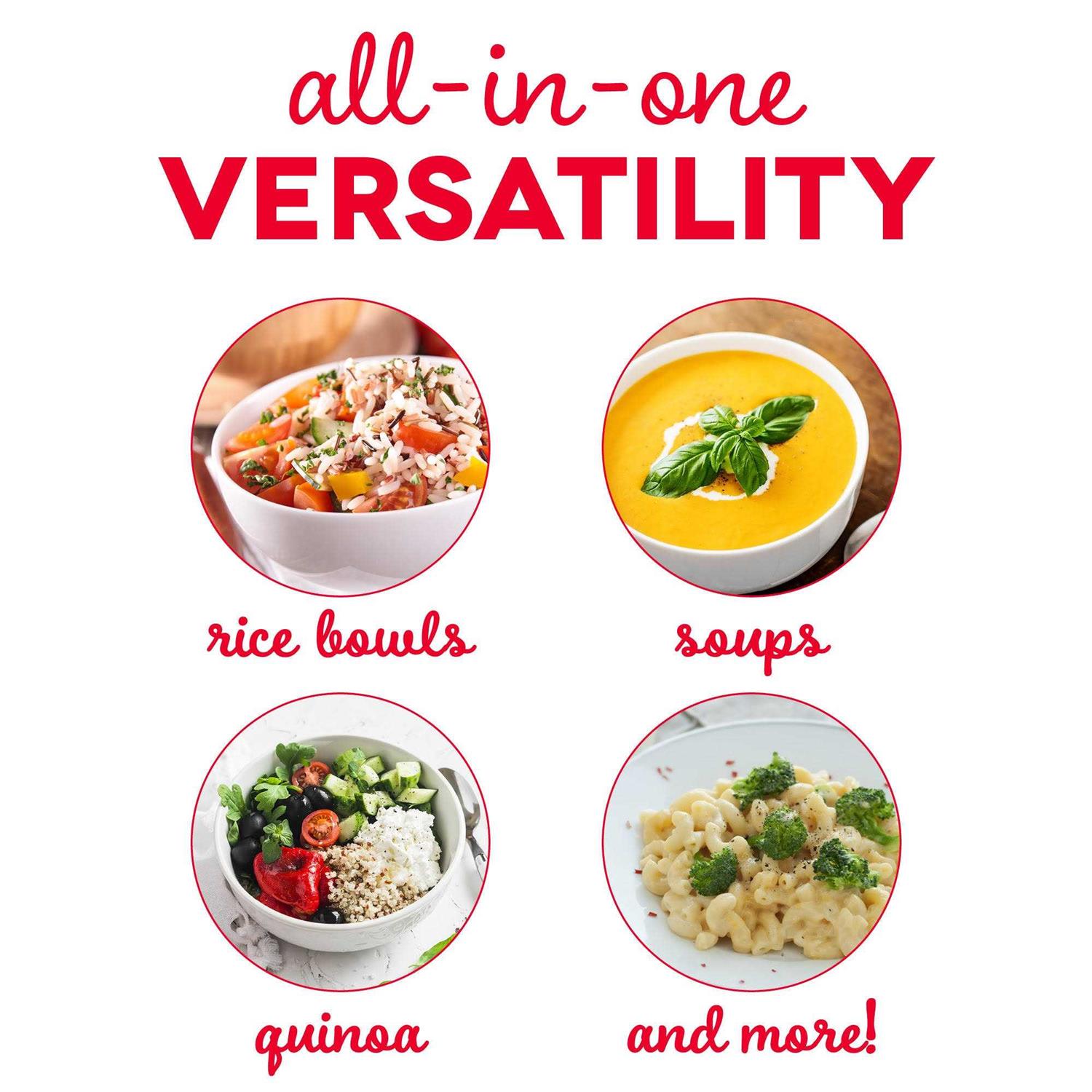 The Dash Mini Rice Cooker with Keep Warm technology is the ultimate mini rice cooker, ideal for single-serving cooking. Just add water and press cook: your meal will be ready in less than 20 minutes! The Keep Warm function ensures that food stays hot, and the removable, nonstick pot makes clean-up easy. Great with more than just rice, add quinoa, oatmeal, or pasta for a quick snack. This cute and compact design is perfect for a dorm room or apartment with limited space.