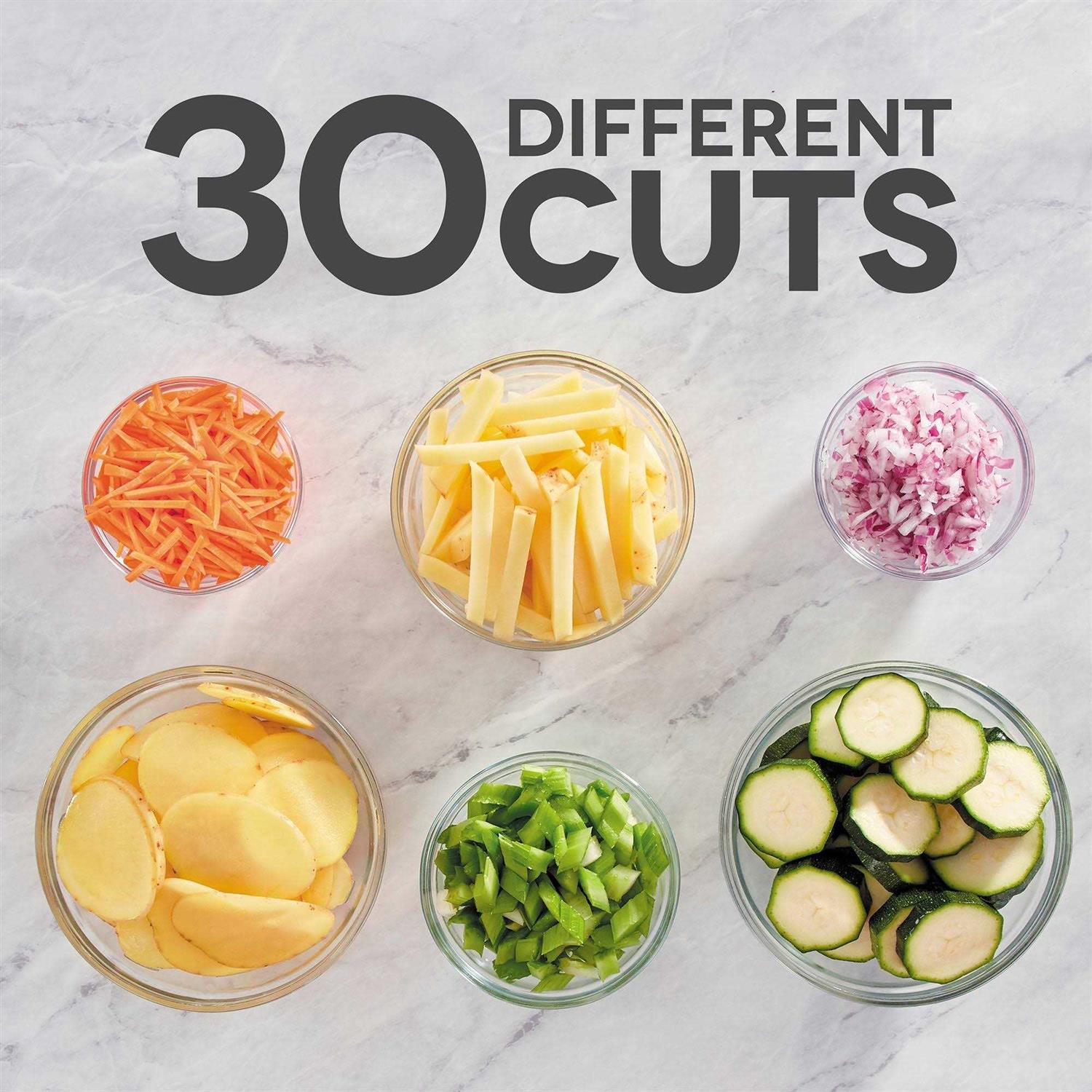 The DASH safe slice mandolin offers a safer way to cut like a Pro. The unique design prevents your Hands from ever going near the built-in blades, making this mandolin the safest option for an Expert slice. With 30+ slicing options, The mandolin cuts perfectly-even slices from 1-8mm in thickness while also offering julienne, matchstick and dicing options. Complete with a recipe guide with dishes including coleslaw or potato chips, The safe slice mandolin makes food prep quick and easy.