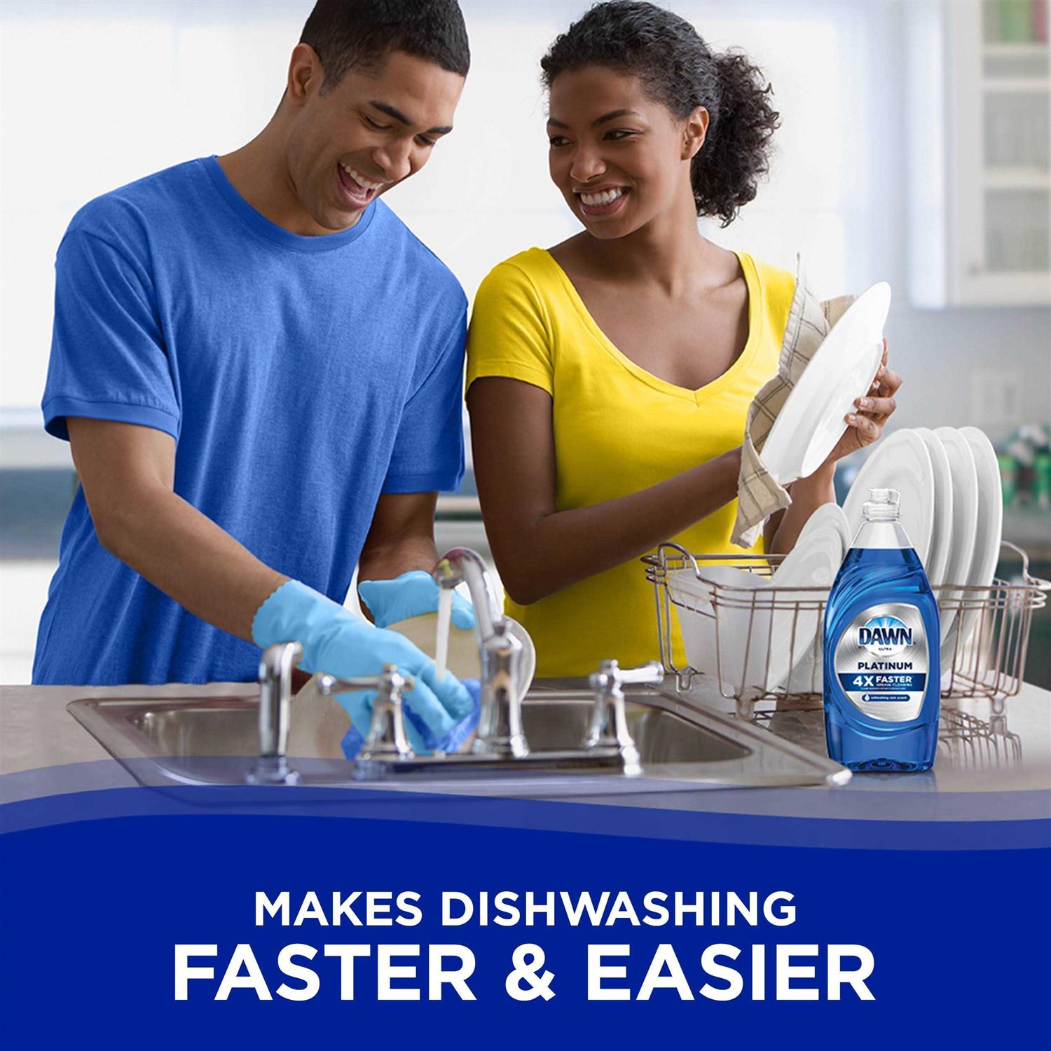 Your toughest everyday messes are no match for Dawn Platinum dishwashing liquid dish soap. with 4 x Faster Grease Cleaning Power (based on cleaning ingredients per drop verses. Dawn Non-Concentrated). Dawn Platinum is our best dish detergent. Dawn Platinum’s improved formula easily removes 99% of grease and food residues by breaking the bonds that hold grease together, on contact. Dawn dishwashing liquid dish soap can even be used to clean items beyond the kitchen sink. Use Dawn dishwashing liquid to remove grease and grime from external car surfaces and the outer shroud of a gas grill. Dawn dishwashing liquid dish soap #1 Dish Liquid (based on sales). Refreshing rain scent America’s #1 dish liquid (based on sales) Contains 4 x faster grease cleaning power (cleaning ingredients per drop verses Dawn non-concentrated) Dawn platinum dishwashing liquid can even be used to clean items beyond the kitchen sink, use Dawn dishwashing liquid to remove grease and grime from external car surfaces and the outer shroud of a gas grill Dawn platinum’s improved formula easily removes 99% of grease and food residues by breaking the bonds that hold grease together, on contact null Your toughest everyday messes are no match for Dawn Platinum dishwashing liquid dish soap. with 4 x Faster Grease Cleaning Power (based on cleaning ingredients per drop verses. Dawn Non-Concentrated).
