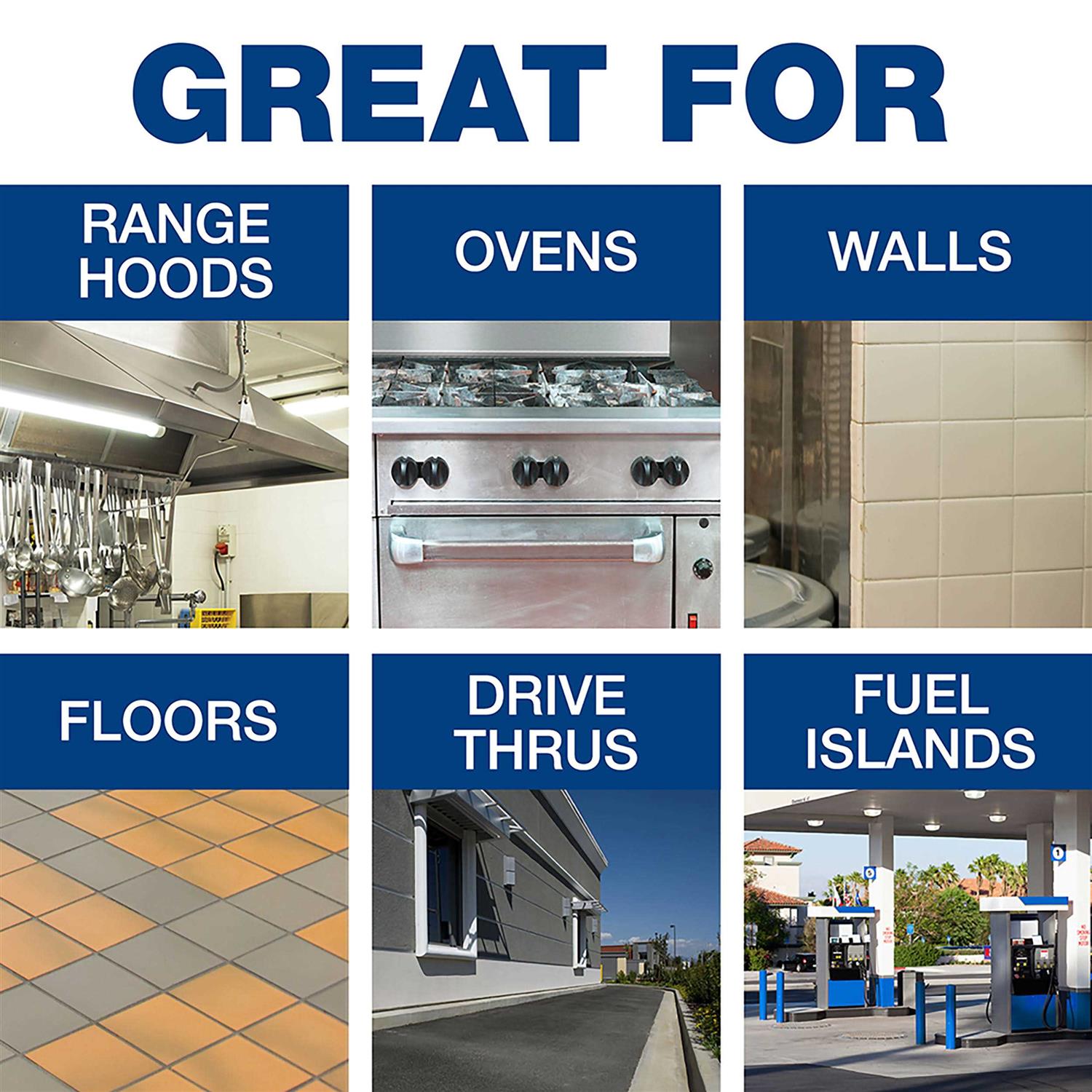 Cuts through tough jobs with the grease-cutting power of Dawn. This industrial degreaser is designed to clean your toughest grease problems. It can be used full strength as a multi surface cleaner on buildup on range hoods, fryers, ovens and walls. It is safe for use on food-contact surfaces when followed by rinsing with water. Excellent for cleaning corral areas and dumpsters and can even be used for cleaning heavy crank case oil from concrete drive-thru pads and sidewalks. This product is phosphate-free, noncaustic, nonflammable, and formulated for employee safety. It’s also designed to clean waxed tile floors without damaging the wax, when properly diluted, and can spot-clean where heavy grease buildup exists.
