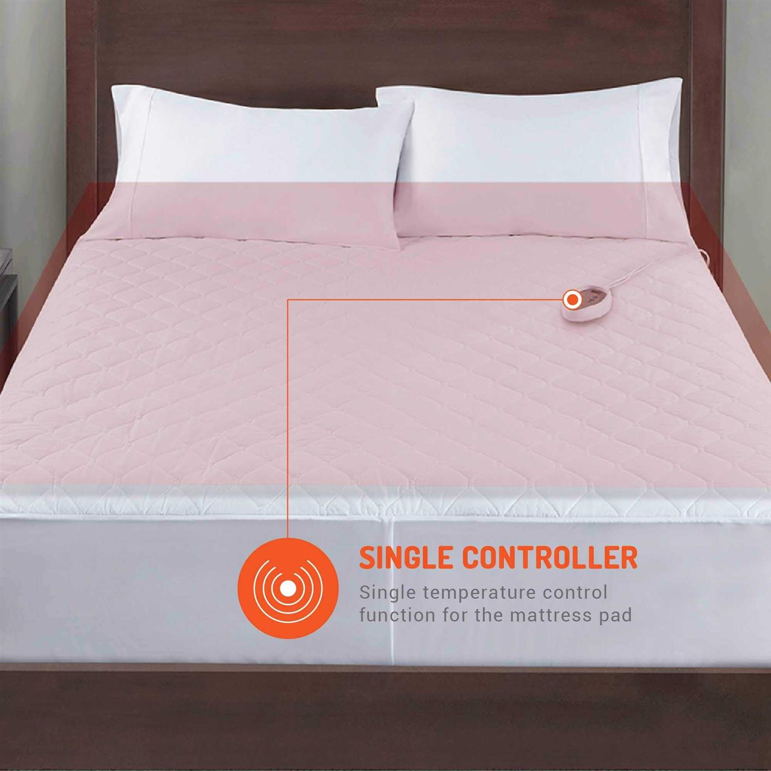 Cotton & Polyester PERFECTLY PLACED PLUG WON’T POKE YOU AT NIGHT: 12.5FT POWER CORD gives you plenty of reach to any nearby outlet, allowing you to place our pad on top mattress without fear of not reaching a wall outlet. YOU ALSO WON’T EVEN FEEL IT’S THERE because of our plump stuffed padding. The conveniently placed 6ft dual controller cords can easily be reached and tucked away as well. PROTECT SKIN FROM BURNS & RADIATION: MOST COMPETITORS DON’T MENTION how harmful amounts of electromagnetic radiation can be transmitted through the heating process in most heated bed warmers. NOT IN OURS. Also, our mattress pads are 100% UL SAFETY CERTIFIED. HEAT ONE SIDE & COOL THE OTHER: BOTH SPOUSES CAN CUSTOMIZE their side of the bed’s temperature! 2 Individual Dual controllers (exclude full size) give each person the power to choose their own heating preference. Allowing you to be QUICKLY HEATED FROM THE BOTTOM UP or quickly cool down as you wish. PREMIUM QUALITY FABRIC & 5 HEAT SETTINGS: The surface of electric mattress pad is made from soft and breathable polyester fabric, which makes you feel comfortable and enjoy a nice sleep. And waterproof heated mattresses can protect your beds from accidental spills. Besides, mattress pads with 5 heat settings design meet your different temperature demands for sleeping.