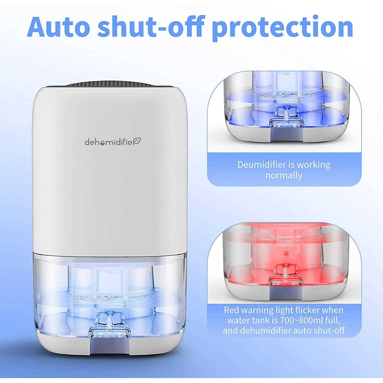 Just Take it easy! Auto Shut Off Protection: When the water tank is 700~800ml full dehumidifiers will auto shut off work and the light will flash red to inform you.